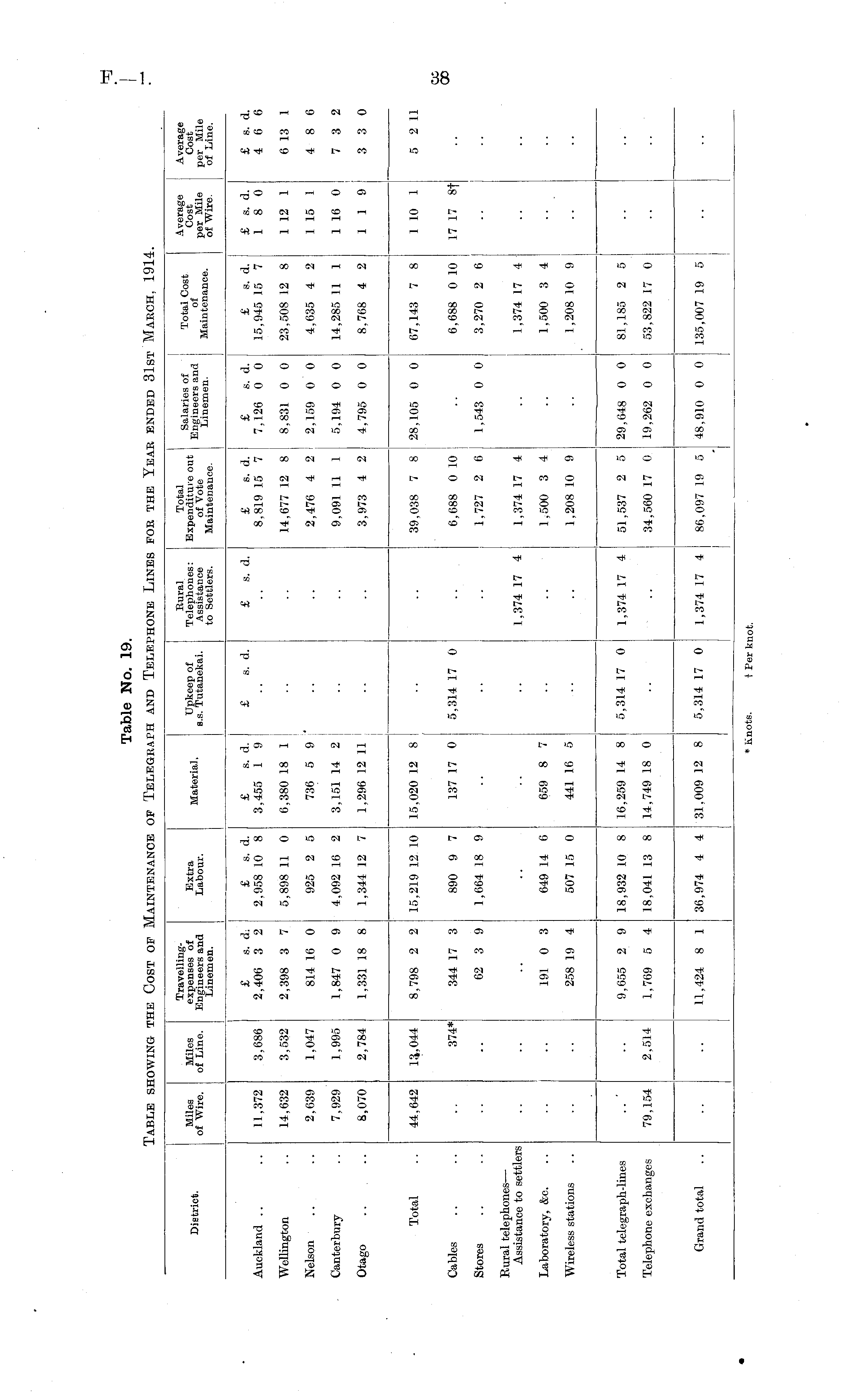 Table No. 19. Table showing the Cost of Maintenance of Telegraph and Telephone Lines for the Year ended 31st March, 1914.