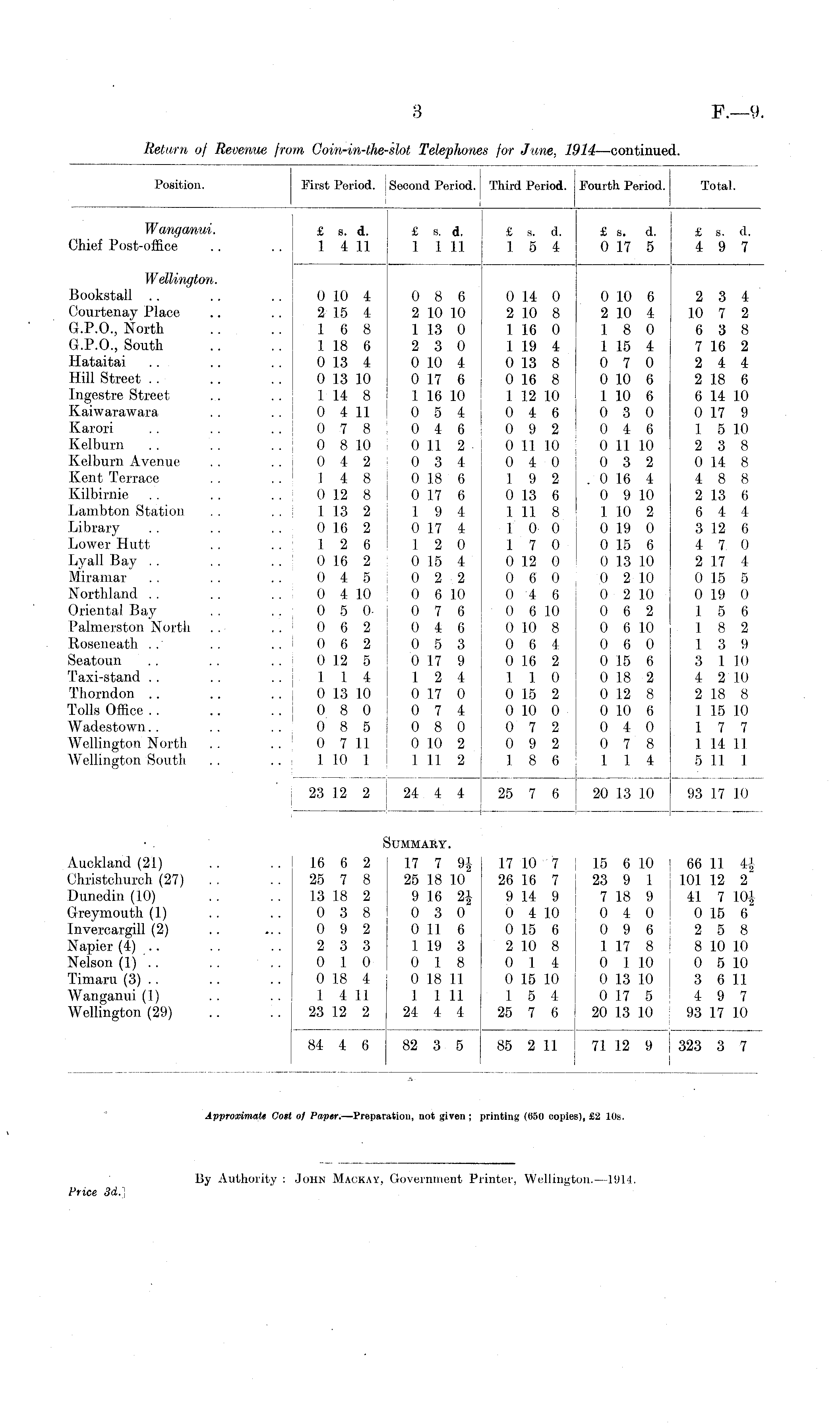 Return of Revenue from Coin-in-the-slot Telephones for June, 1914 —continued.