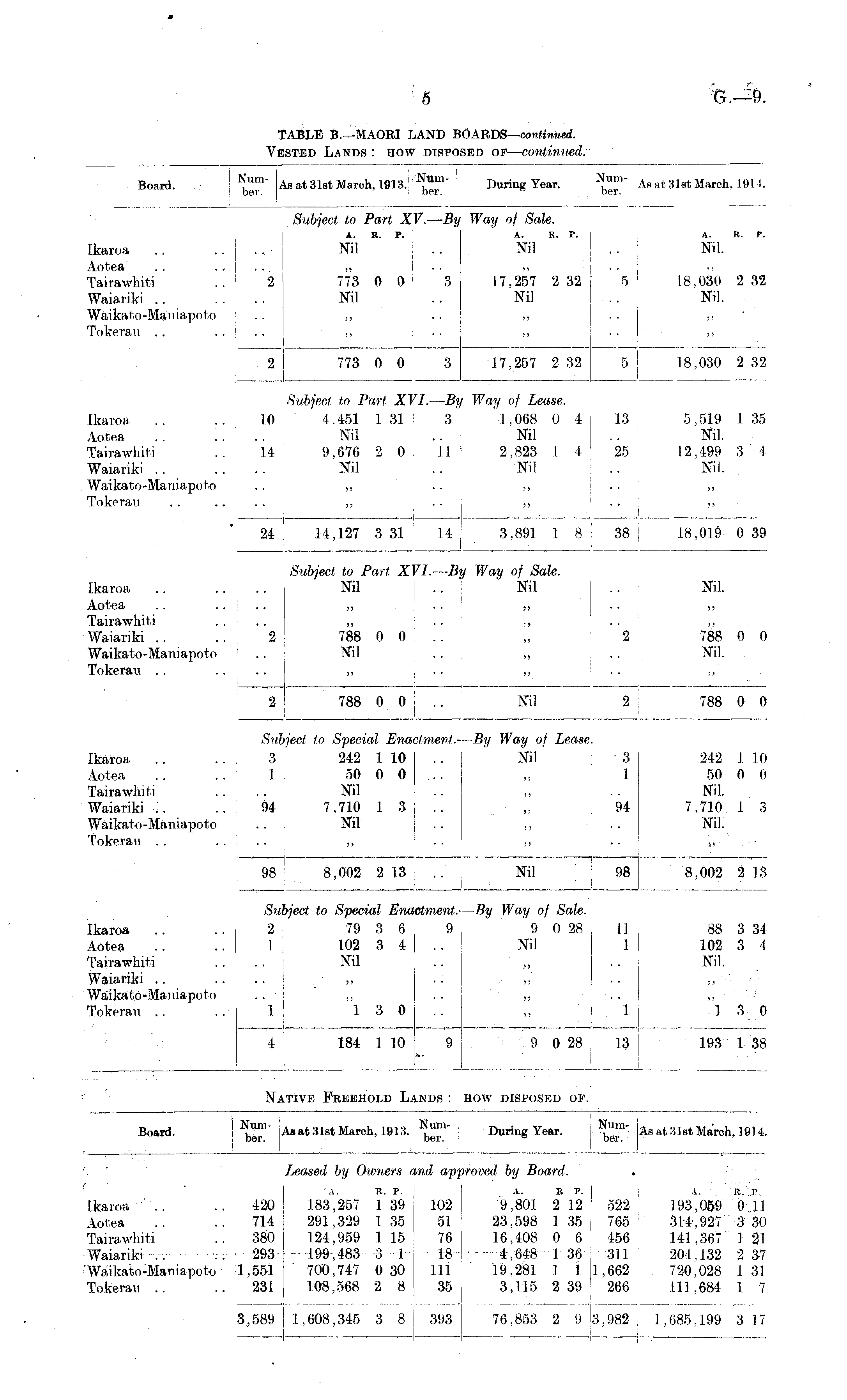 TABLE B.—MAORI LAND BOARDS— continued. Vested Lands: how disposed of — continued.