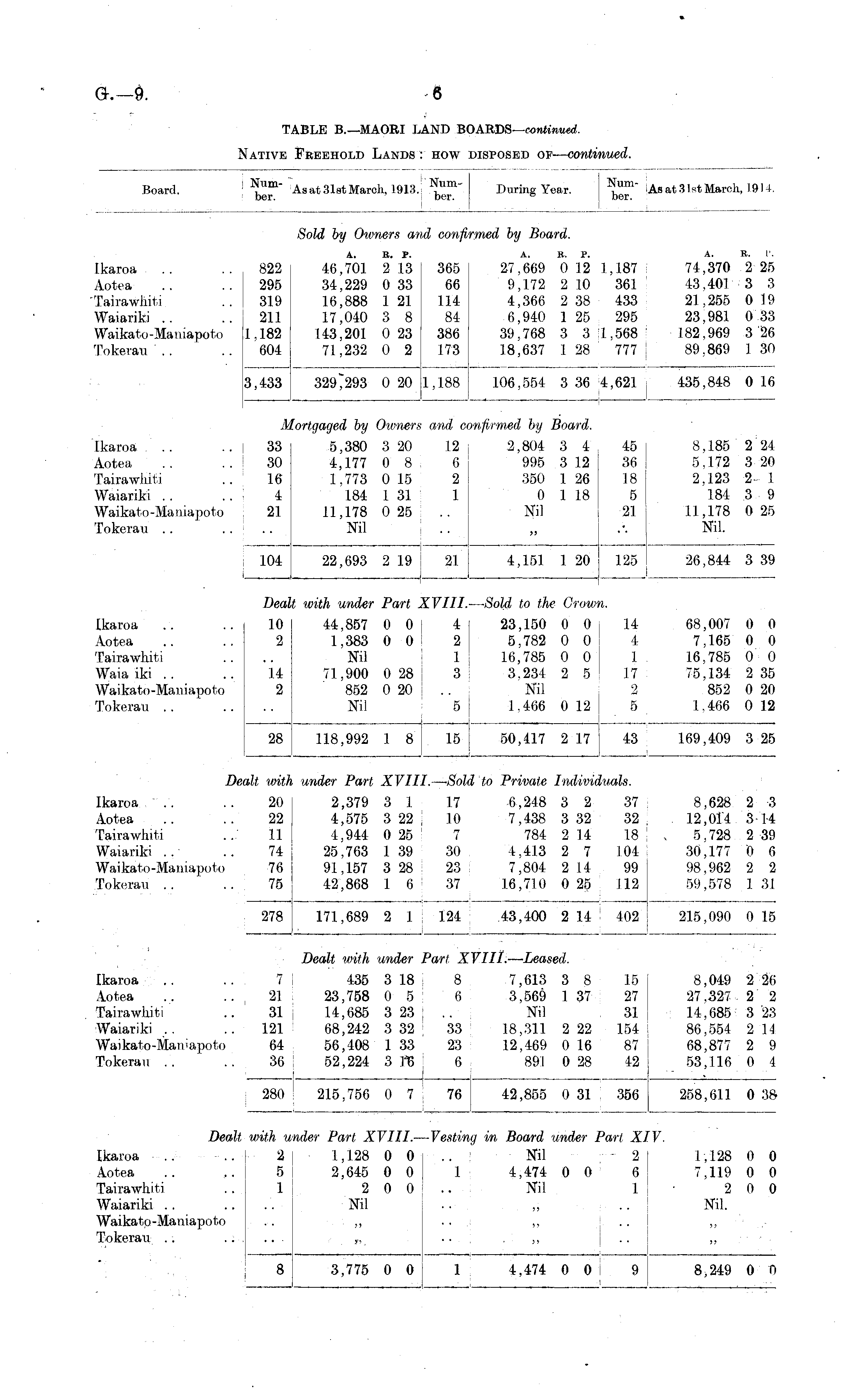 TABLE B.—MAORI LAND BOARDS— continued. Native Freehold Lands: how disposed of — continued.