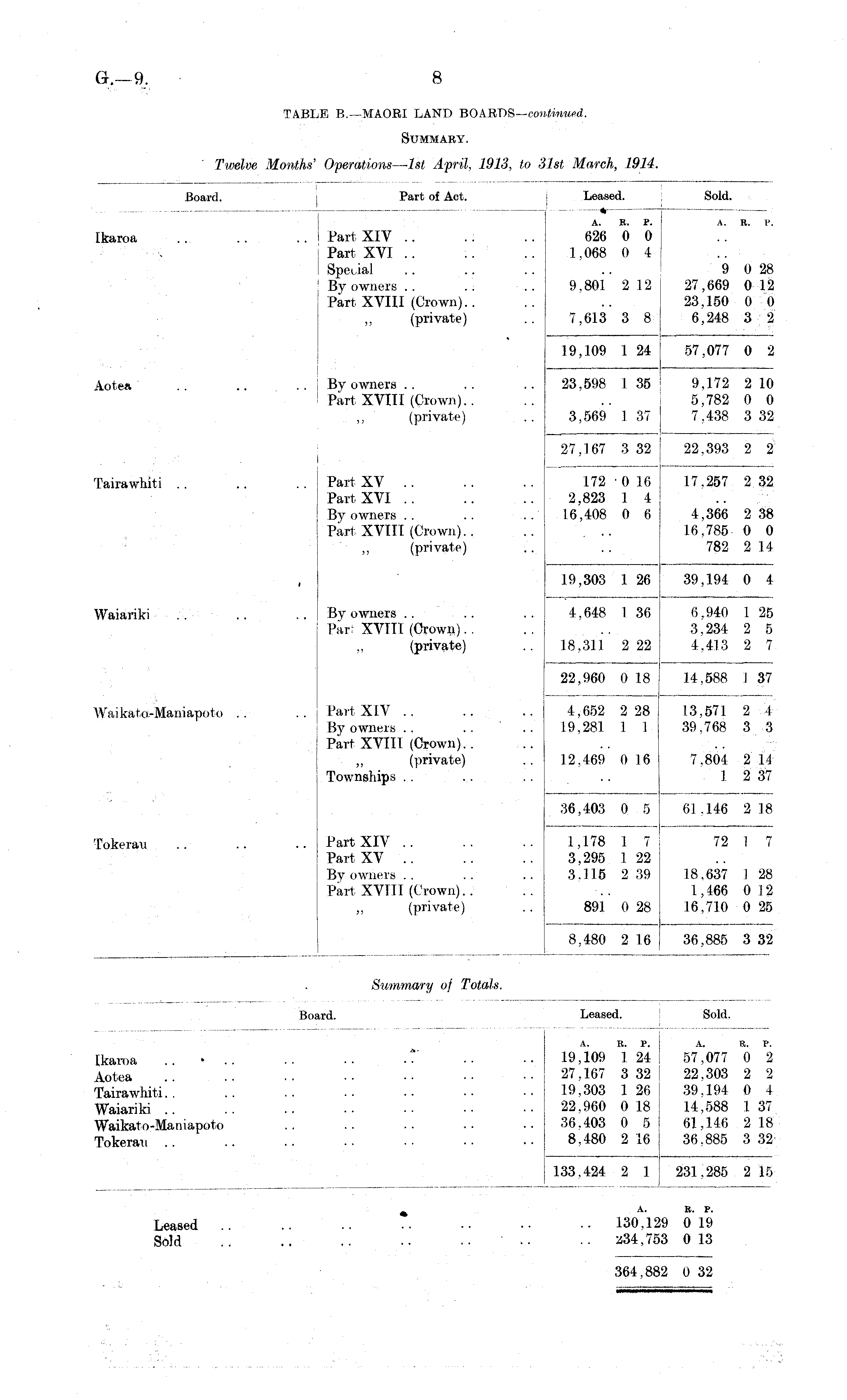 TABLE B.—MAORI LAND BOARDS— continued. Summary.