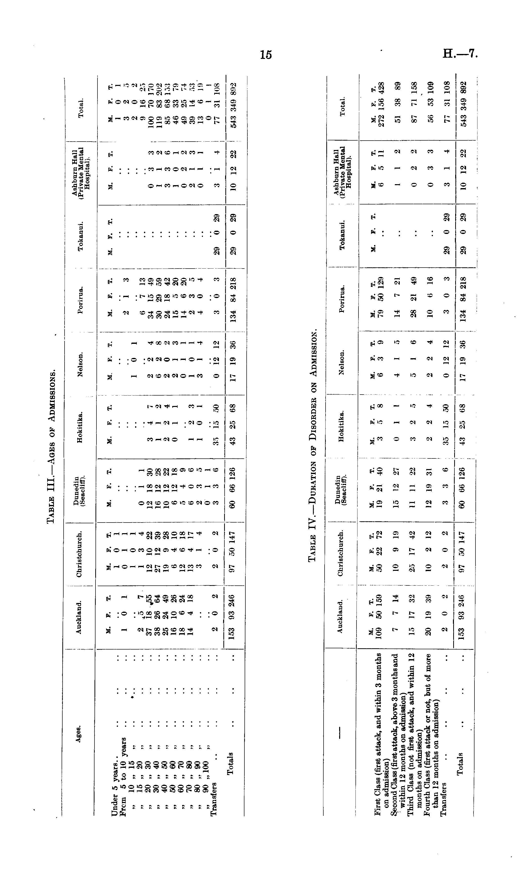 Auckland. Chrietchurch. Dunedin (Seacliff). Hokitika. Kelson. Porirua. Tokanui. Ashburn Hall (Private Mental Hospital). Total. 109 50 159 M. F. T. 50 22 72 M. F. T. 19 21 40 M. F. T. 3 5 8 M. 6 F. T. 3 9 M. F. T. 79 50 129 M. F. T. -M. F. T. 5 11 M. F. T. 272 156 428 First Class (first attack, and within 3 months on admission) Second Class (first attack, above 3 months and within 12 months on admission) Third Class (not first attack, and within 12 months on admission) I'ourth Class (first attack or not, but of more than 12 months on admission) Transfers 7 7 14 15 17 32 10 9 19 25 17 42 15 12 27 11 11 22 0 1 1 3 2 5 4 5 1 5 1 6 14 7 21 28 21 49 I 0 1 2 2 2 51 38 89 87 71 158 20 19 :m 10 2 12 12 19 31 3 3 6 2 2 4 35 15 50 2 0 2 4 12 12 10 6 16 3 0 3 0 3 3 56 53 109 2 0 2 2 0 2 29 0 29 3 1 4 77 31 108 Totals 153 93 246 97 .50 147 60 66 126 43 25 68 17 19 36 134 84 218 29 0 29 10 12 22 543 349 89: