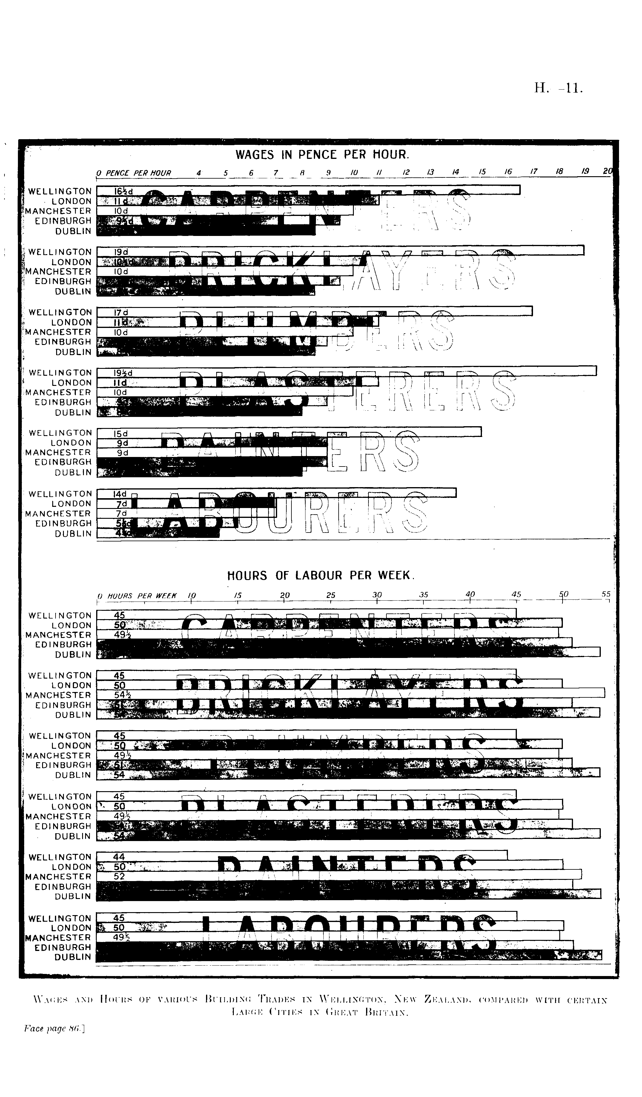 Wages and Hours of various Building Trades in Wellington, New Zealand, compared with certain Large Cities in Great Britain.