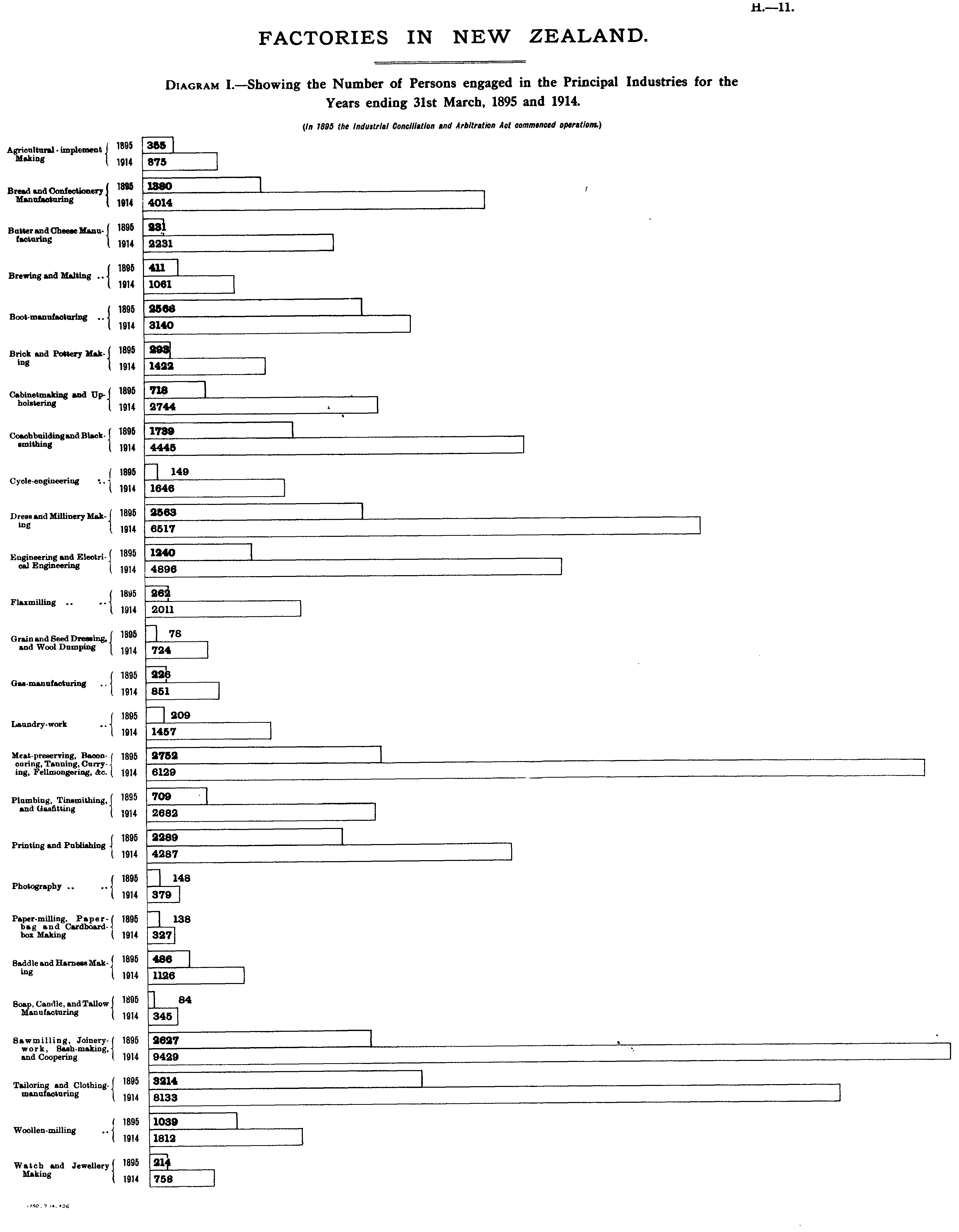 Diagram I.—Showing the Number of Persons engaged in the Principal Industries for the Years ending 31st March, 1895 and 1914.