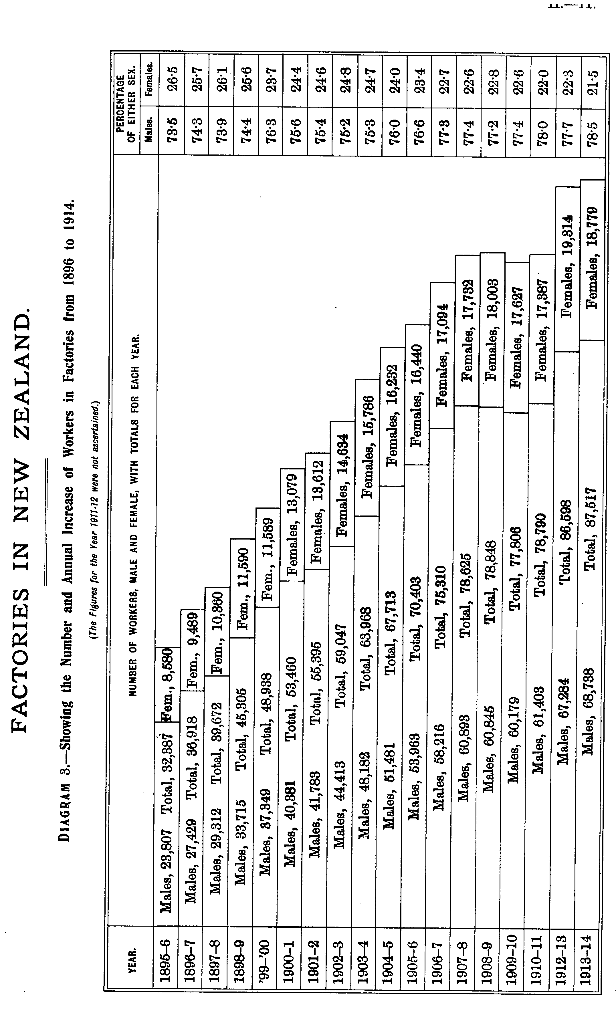 Diagram 3.—Showing the Number and Annual Increase of Workers in Factories from 1896 to 1914.