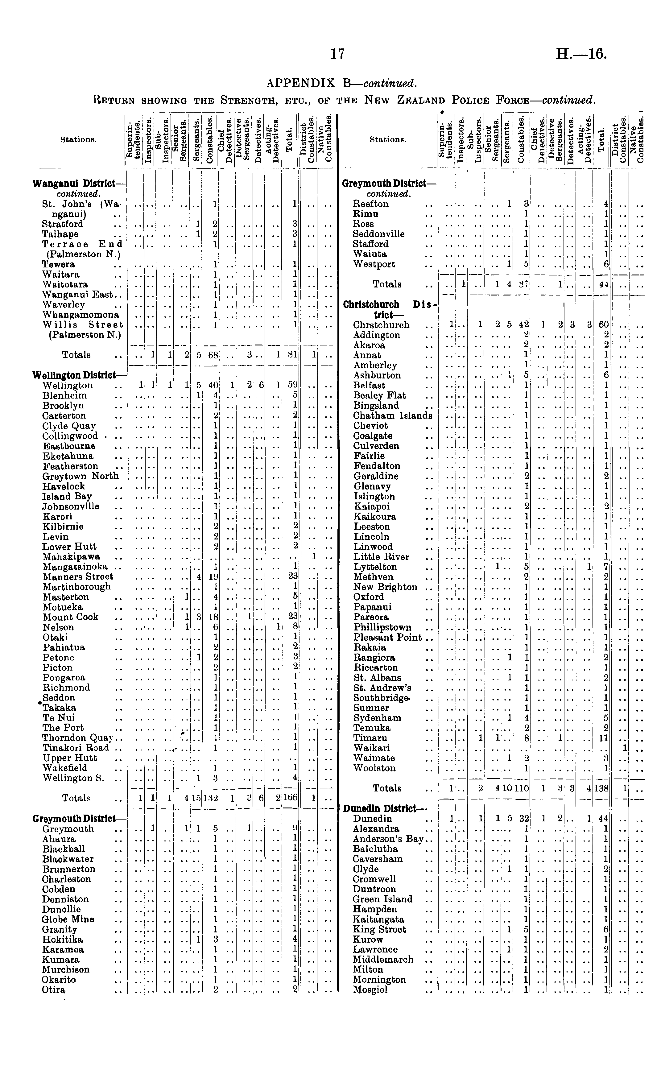 APPENDIX B— continued. Return showing the Strength, etc., of the New Zealand Police Force— continued.