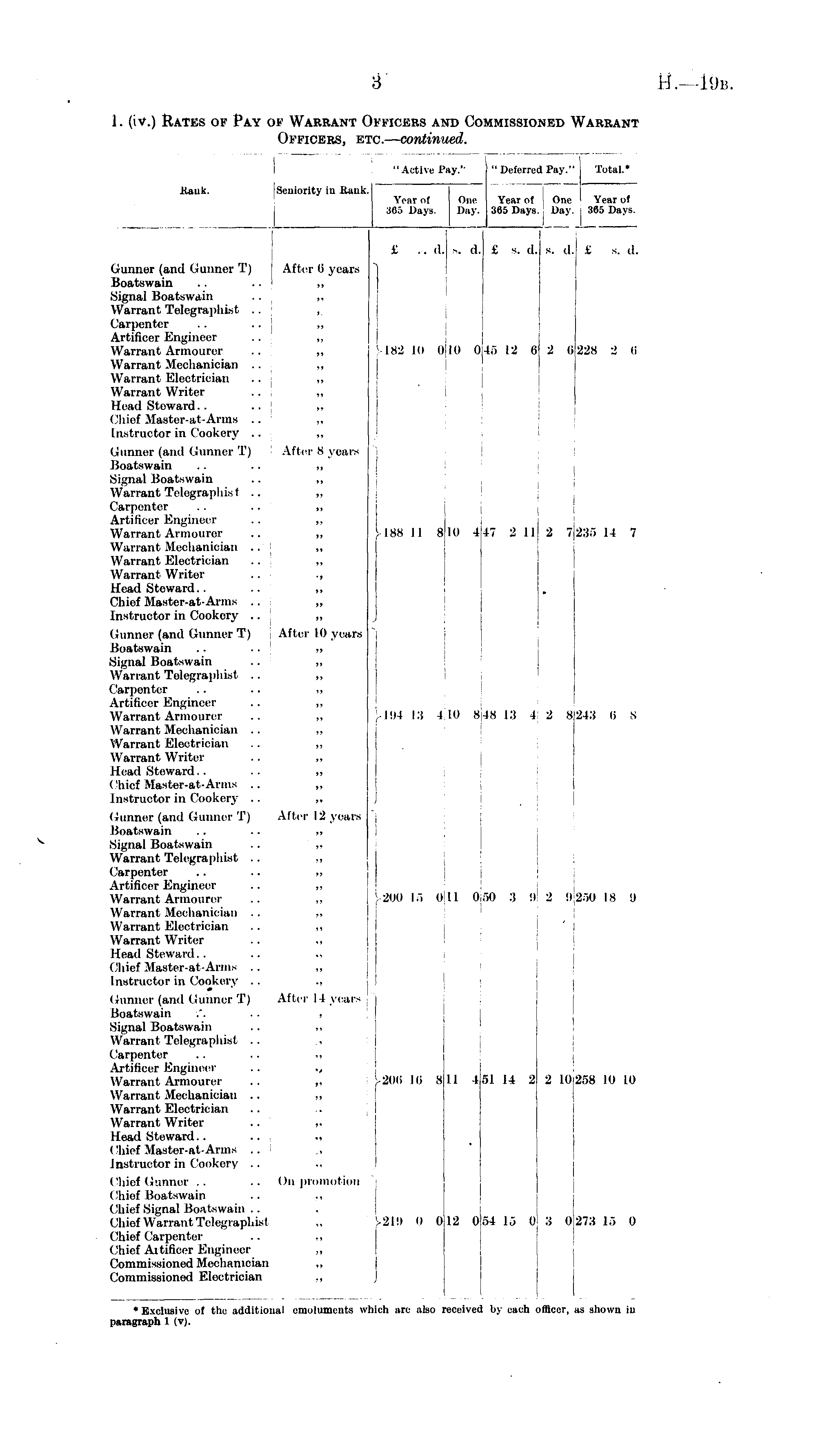 1. (iv.) Rates of Pay of Warrant Officers and Commissioned Warrant Officers, etc. — continued.