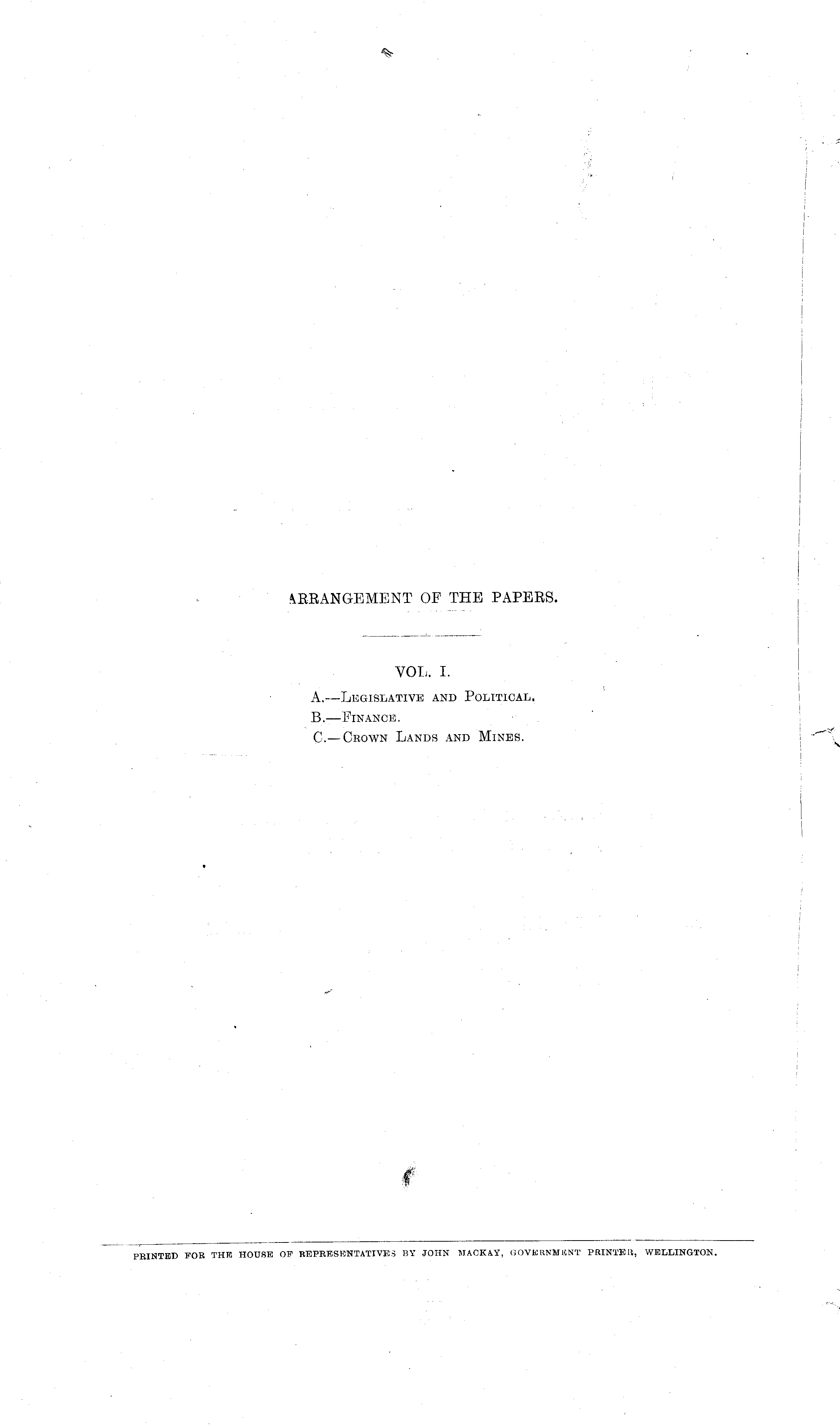 VOL. I. A.—Legislative and Political. B.—Finance. C.— Cbown Lands and Mines.