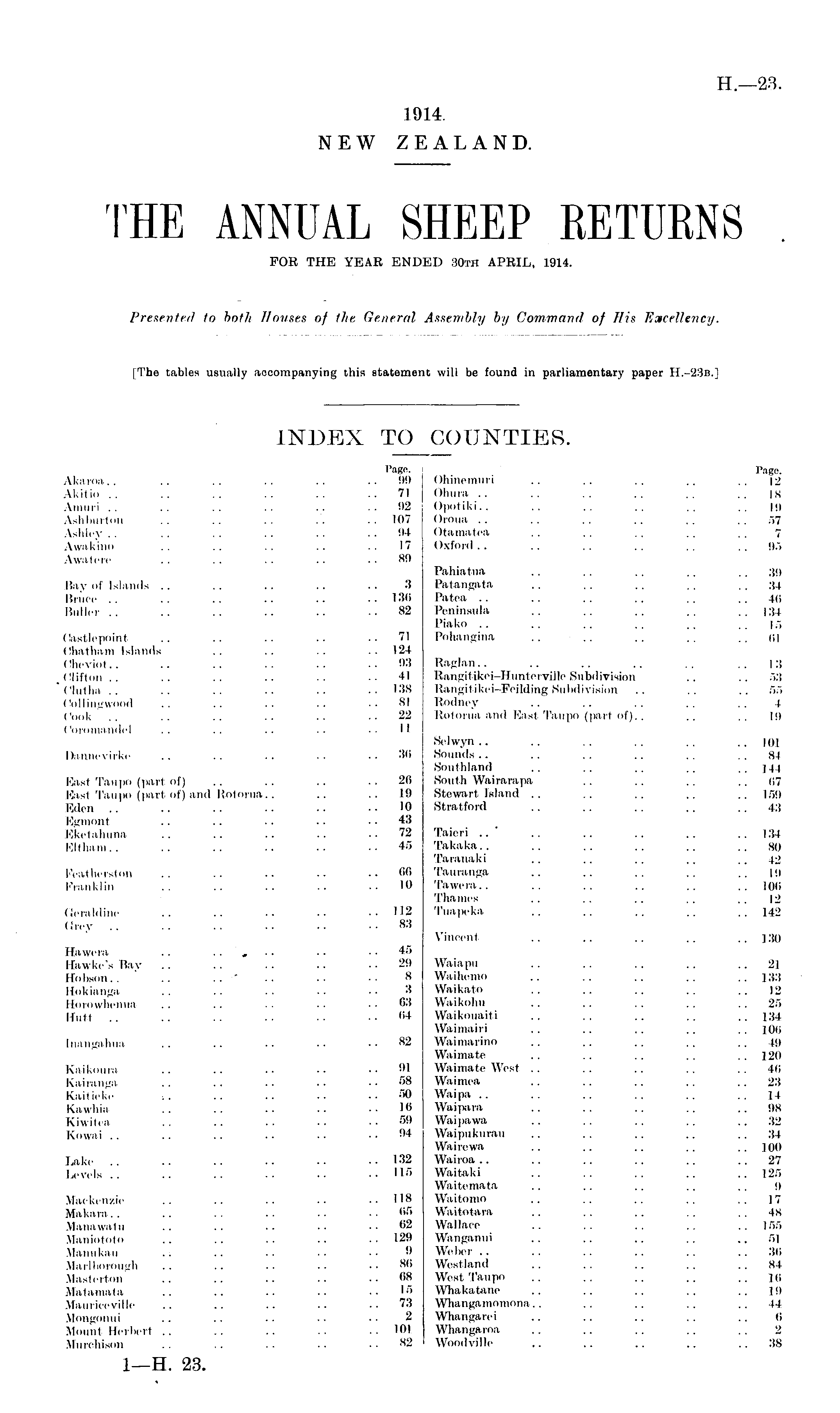 THE ANNUAL SHEEP RETURNS FOR THE YEAR ENDED 30th APRIL, 1914.