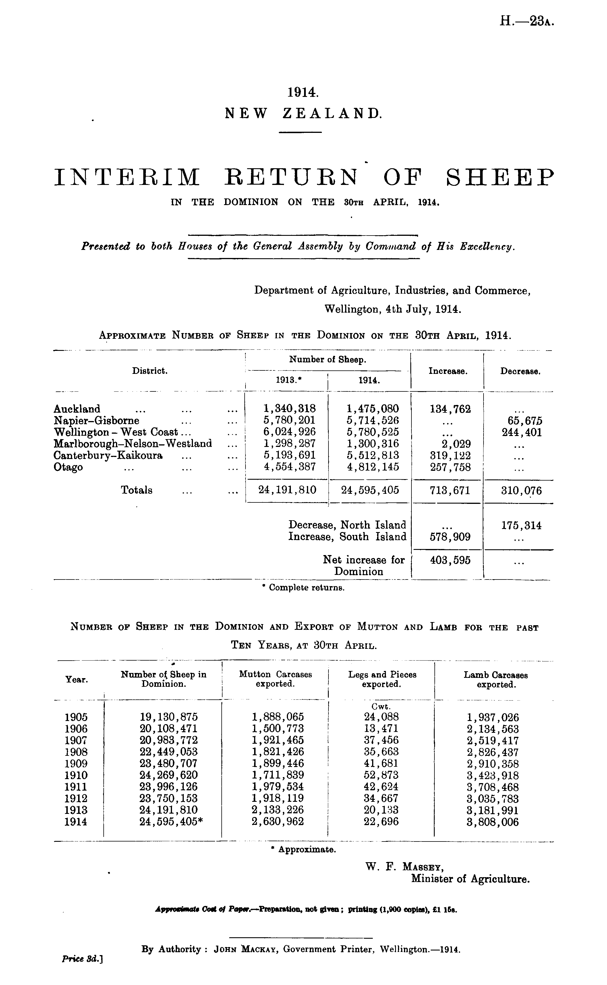 Department of Agriculture, Industries, and Commerce, Wellington, 4th July, 1914.