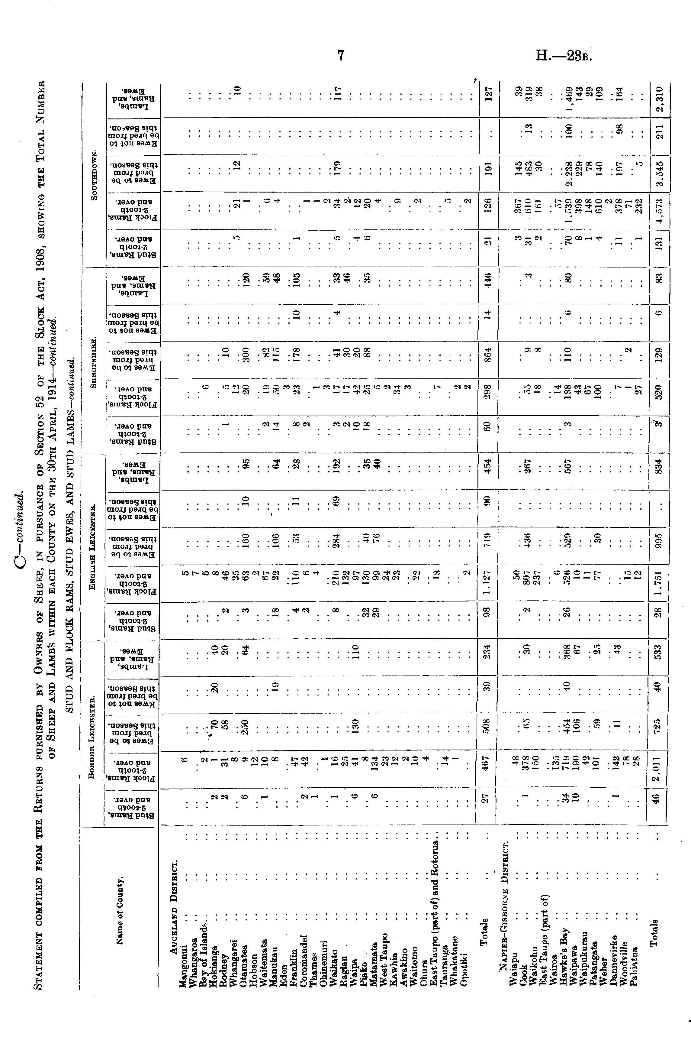 C— continued. Statement compiled from the Returns furnished by Owners of Sheep, in pursuance of Section 52 of the Stock Act, 1908, showing the Total Number of Sheep and Lambs within each County on the 30th April, 1914— continued. STUD AND FLOCK RAMS, STUD EWES, AND STUD LAMBS— continued.