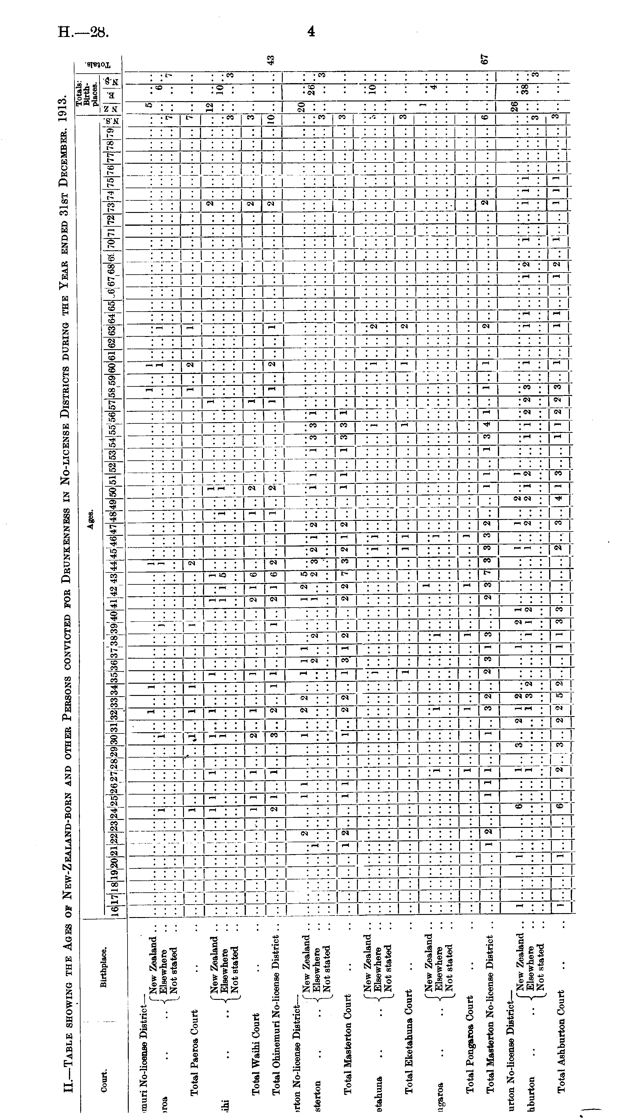 II.-Table showing the Ages or New-Zealand-born and other Persons convicted for Drunkenness in No-license Districts during the Year ended 31st December, 1913.