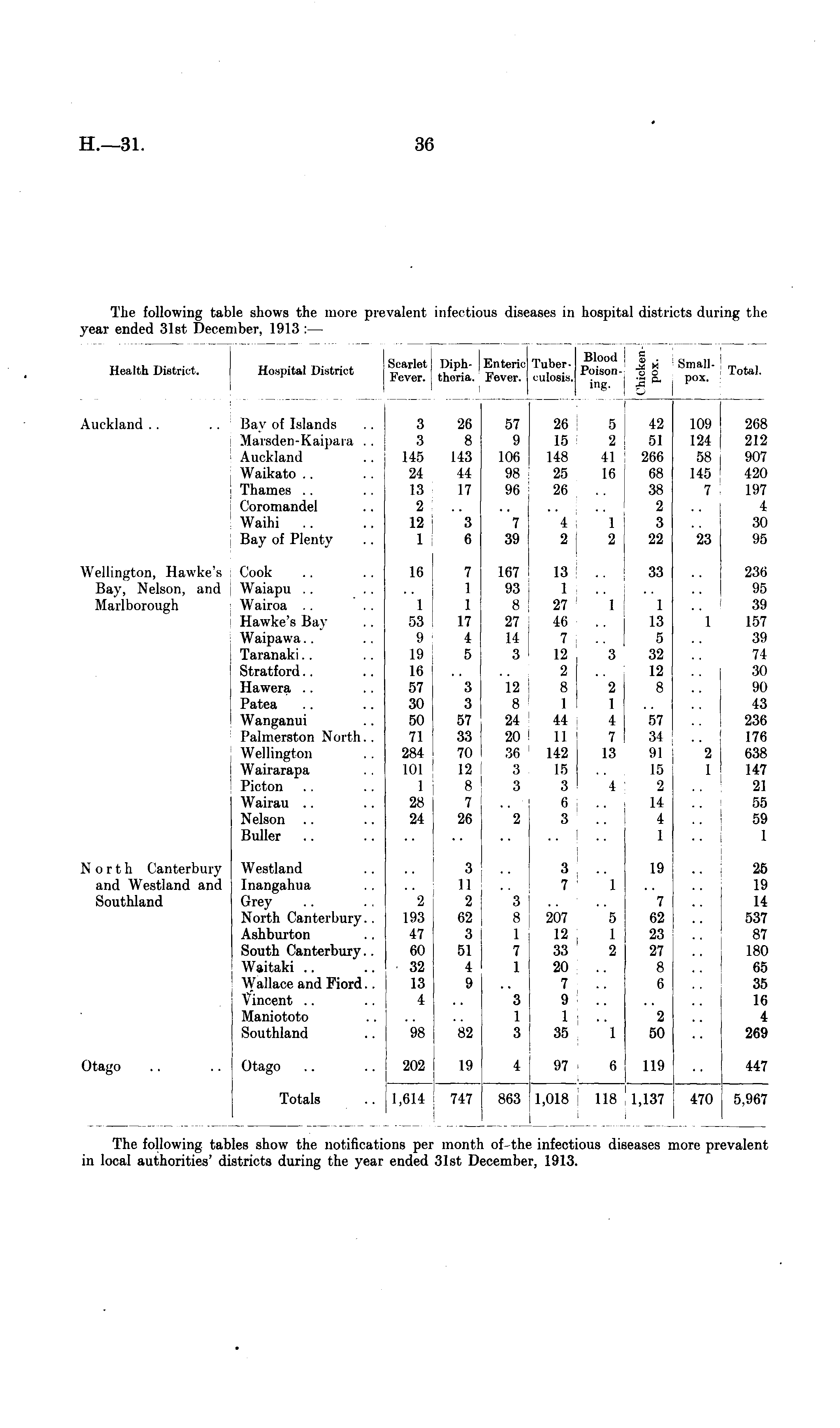 The following table shows the more prevalent infectious diseases in hospital districts during the year ended 31 sf December. 1913:—