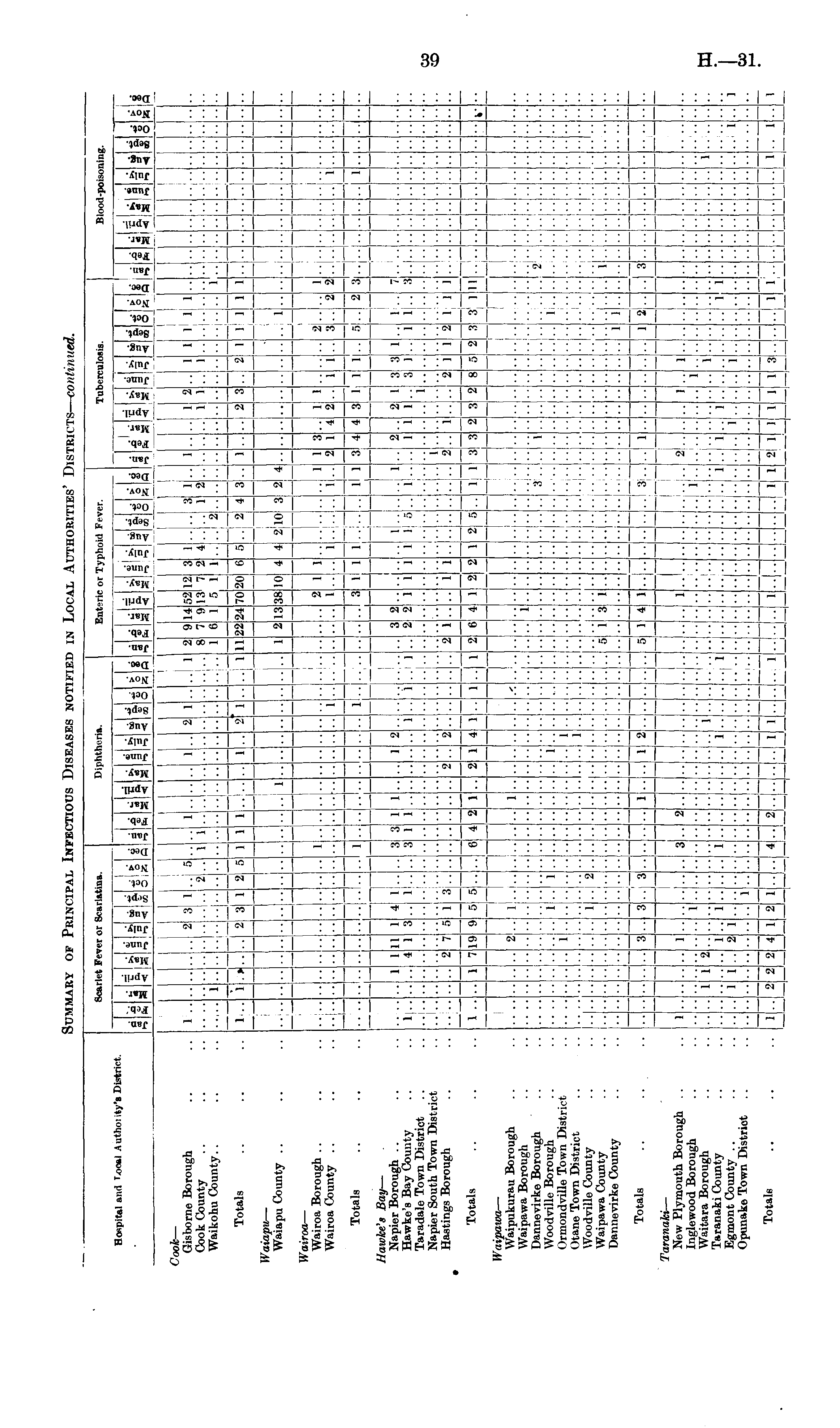 Scarlet Fever or Scarlatina. Diphtheria. Ent»ri( or Typhoid Fen ■(-r. Till rcuK ■is. lood-poi; Ing. Hospital and local Authorlty** District. -: - == - - I d - i 0 Z 8 = b< it ill < i o * I i I # || i s - iRiji I = I 4 ill ii " d § I a & I 1 I Cook— Gisbome Borough Cook County Waikohu County 1 .. 2 .. 3 2 1 1 ■■ 2 .. 1 2 8 !1 7 (i 14 1 5212 13 7 5 1 i 1 4 !! 2 I 2 r i I 1 i .... i •• ■• - •• '• ■■ •■ ■■ ■• •■ ■■ ■■ ■■ ■■ •• ■• ■■ ■■ ■■ ■• ■• ■• ■■ ■■ ■■ ■■ ■■ ■■' ■■ ■• .. — - - - - - :> " - - - : : - >- ! 2^ h- - -I H - - U1 H H i--i — M -:- —! - H Totals ■i :i 1 2 1 • < ' ii l>4 7020 2(i .-) •■ 2 * ' i = I i i i i •' ■• ■• ■• ■■ ■■ •• ■■ •• ■•- •• ■■ ■■ •• ■■ Waiapu — Waiapu County .. — ,- - —, - - -J •- W - -! -i — — — M M _j - !- — -i u —< <— - -j >-• - — i—: -< — - -' M -: -. :— U I—i Hd i 2 13] 38 10 M :! 2 4 ■• ■• ■■ ■■ ■•, ■• •■ ■■ ■• •■ ■■ ■■ •■ ■■ '• " •• •■ ■■ ■• ■■ ■■ ■• •• ■' .. ■• - - - - - l I— i — i — - i- - : -i -A — I- 1 — - — — - : - - — ! - '- - - - — !— i— -• — - 1 '-' — - Wairoa — Wairoa Borough .. W;iiroa County 2 1 i 2 3 1 i 2 2 3 i 2 1 I 1 4 i i 2 i ■■ ■• ■■ ■■ ■■ •■ ■■ ■■ ■■ •• ;■• ■■ •• ■■ .... ■■ ■• ■' ■■ ■■ •• •• ■■ ■■ I-μ •■ ■■ ■• ■■ •■ : - - ; — - i— - - -4 — - - — [ - 3 - - - - H 3 4 H -, - 1 H I—I — —. H !— i U Totals .. .. 1 1 M I , 1 1 4 * 1 i •-■ 31 i •• ■•: •■ ' 'I •' ■■ •• ■• ■' •• ■■ ■• ■■ ■• ■■ ■• ■■ Hawke's Bay — Napier Borough Hawke's Bay County Taradale Town District Napier South Town District Hastings Borough "\\.\ —I - i 4 II 1 i I 1 — - _J 3 -J I \— 1 1 1 U I— _ — 1 — I . . I - 3 2 -■ 2 2 -i i I - 1 — 1 - o — ! — . . i i .. - -I 2 1 'i !— ' - 3 3 -' 3 — 1 .. 1 .. - _J ■'•\ .. .. - -i U :-' -, - '.'.[.'. ■1 2 7 ¥.: I 2 ■ ■ Totals dJ i.. •• -J •■ I 7 lit 5 ~> I 5 5.. ■■ - ■■ - •• 4 ■■ 1 2 'I 1 'i H > •• I ■■ ■■ - I ■■ i H i ■2 2 1 1 2; I • ■ 1 ■■ -' ■■ .-> ■■ — 1 1 i - 3 * s i .-. I 2 2 3 i i I 11 1 ■■ -J ■■ - _J •• _ ■• — : •• _j •■ (i 2 :: 3 • ■ ■• ■• •• ■• ■■ •• ■■ •• Wdipawa —• Waipukurau Borough Waipawa Borough Dannevirke Borough Woodville Borough ()rmondville Town District (Kane Town District Woodville County Waipawa County Dannevirke County — — - -■ — — - — - — -' - — :- — i i u — - _' — — -. _ M !— i i—i — i- . U — M -i -i 2 •• I .... 3 '.'. •*:: 1 i i i i i .. I:::: i 2 ■ Totals Taranaki — New Plymouth Borough .. Jnglewood Borough Waitara Borough Taranaki County Egmont County Opunake Town District ■■ - ■■ - ••i - '• - ■■ - ■■ - • ■• : 3 -■ ■• ■— •■ • i 3 i ■■ • ; — .. — ■■ » — i ■■ - 1 u ■■ - ■■ — ■■ - : ■• — 1 - •• -' — ■■ - •• ; — •■ _ •• - ; ■■ — •• - ■• -J •• — i B u 5 ■' T - 1 3 ■• 4 i ■■ • — ■• — ■ i- 1 ■■ _ .. ! - ■■ — •• -i i— 11 i ■■ — ■- 2 •• i -I •• U •• l- ■■ M ■• — .. - •• - i ■• — ~ 1 1 u .. i .. i ■• - 1 ■■ -A i ■• 3 -J \— U — — ■■ — •• u ■■ — •■ - 1 ■■ - ■ — ■■ _ — — _ •• — i i i> i .. I 1 i .. 1 i 1 I i l i I '.'."] i i •■ "I ■ •• ■■ I I ] I •• •• ■■ •'I ■■ •• •■ ■■ ■■ •• ■■ ■• ••i ■■ ■• ■■ •■ ■■ .... ■■ •• ■• ■■ •• •• ■• •■ ■■ ■■ ■• ■■ ■■ ■• ■■ •• •• •■ ■■ Totals -> - 2 -i 2 4 - i I — 4 - - 2 - - i — !- -J 1 :d - u u i_ 1 i 2 H ■ 1 3 U w - 1 '-! M -i :-■ _ - - I ■■ ' M 1 •• ■• ■■ •• I" •• •• ■■ •• ■■ ■■ •• _ -J i_ I_J _i !- _ _j l —I l_ l_l _i •■— i u - —; '._.. i i i i . . __ i_l i