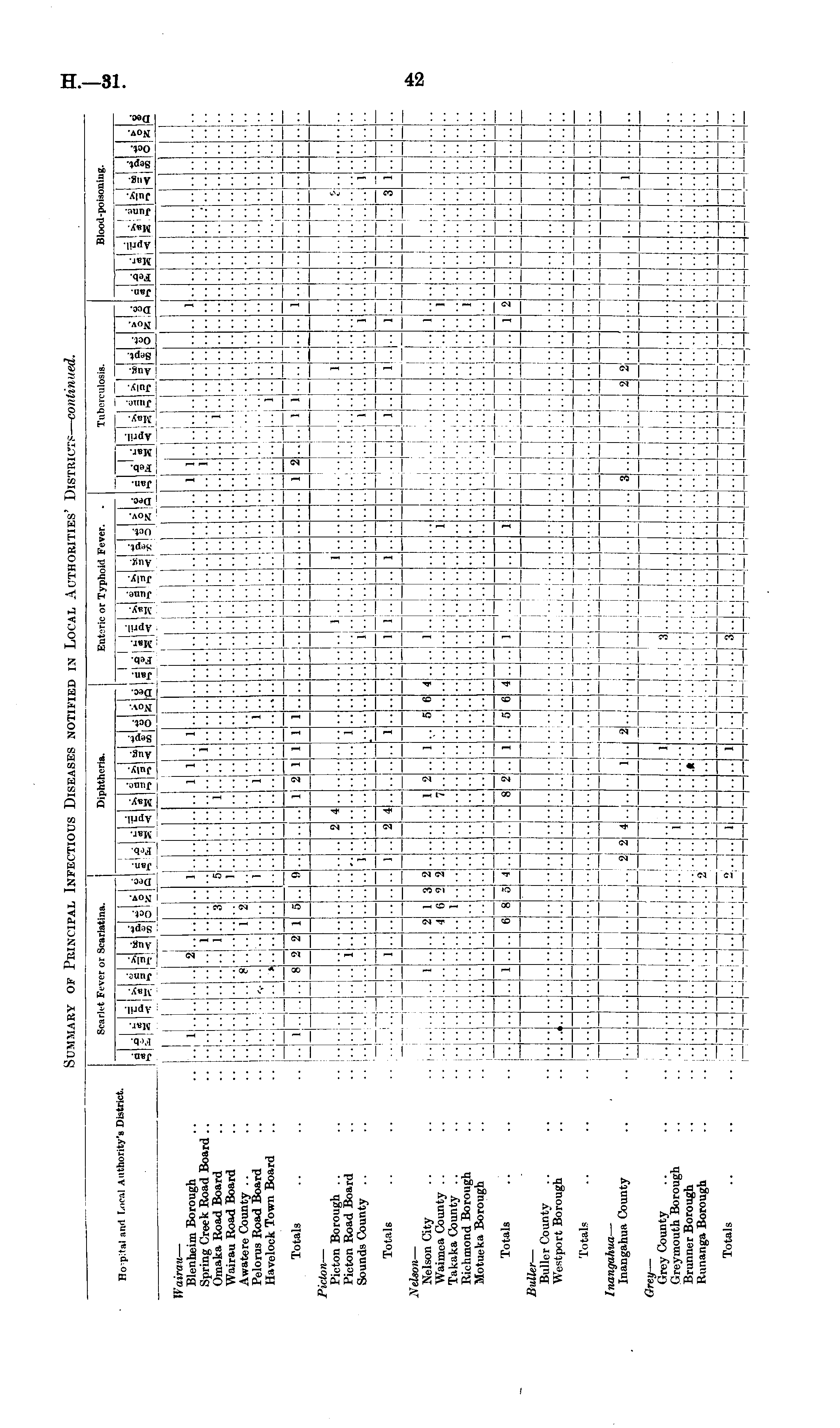 Ho-p:t.il anrl Local Authority's District. Blenheim Borough Spring Creek Boad Board .. Omaka Road Board Wairau Koad Board Awatere County Pelorus Road Board Havelock Town Board Totals a j —' Scarlt-t Fiver or Scarlatina. £ - - -. < -r. C >-. - 2 1 1 i\& £ 3 S Diphtheria. 1 7~— -\ — r^~r~ I Kut ri( or Typh( ,i.l !•'.•■ -j I 4 I I a it 1 1 5 i '- -■ .. i Tabercuk is. h 5 S 4 i. cfl - ? -. -. < ■/■: ; '. - Blood -p*)isoni iir. :t I 's 1 "■2 ■■ I i i .. .. ■ i ■• •• ■■ ■■ •■ ■■ •■ •■ ■• ■• ■• ■■ •■ ■■ •■ •■ ■■ ■• ■■ ■■ ■• ■• ■' ■■ •■ ■■ •■ ■• ■■ ■■ " ■■ ■• ■• ■■ ■• •• •■ •■ •■ ■■ •• - - - - - r> ~ — i -i — : ~ I-i-l H i- -; - - — - - — -, — - — •2 - .. l - — — - — ~ M — - - -4 -4 - ! s 2 2 !l 1 ■2 I 1 i i I i I ■• ■■ •■ ■■ ■■ ■■ ■■ ■• ■• ■• '• •• ■■ •■ ,.., ■• •• ■■ ■• •• •• ■■ ■• ■■ ■■j :•• - -4 -4 - - - — -' - - -4 u ■■— i — - - - - u - - u - — -J -! - -I I,_i i— , — i U I- _ —\ -4 Piclon — Picton Borough Picton Road Board Sounds County .. 1 ■■ 2 i .. .. .. .'. i .. .. i 1 :■ i .. I ■■ I l • ■■ ■• •■ ■• •• ■■ ■■ ■■ ■• ■■ ■• ■• ■■ ■■ ■■ •• ■■ •• ■• ■■ •• ■• •■ ■■ ■■ ■■ ■■ ■■ •• ■• - - - — i - " - i— - — - H ,— ■ - —! - - i— - - - - - -. I - - — - - - - - - _ - -i Totals i 2 i I I 1 I 3 l '■ ■■ '■ ■■ ■■ ■■ ■■ ■• ■• •■ ■• •■ •• ■■ •■ ■■ ■■ - ■• •• •• •■ •• ■•I ■• ■■ ■■ ■■ ■■ ■■ ■• - - - — _ - - — i - :— — - :- - — I— '-: - - — - — -i — - -: :_. — - I — — -J -4 — - - - LJ — Nelson — Nelson City Waimoa County Takaka County .. Richmond Borough Motueka Borough 2 -I (i 1 ■1 2 2 1 7 2 ■' .. i i i •■ •• ■ ■■ ■• •• •■ ■■ ■■ •• •■ ■• ■■ ■• ■■ ■• •• ■■ •■ ■■ •• ■■ ■■ •• •■ ■■ ■• ■■ ■■ •■ ■■ ■• •■ ■■ ■■ ■■ ■■ ■■ — -- - -i - i— -: l-l :- - - - - - - -: - - - -i " - - -: H -4 - _! Totals S -1 s ■2 1 r> -i ] i ■2 •■ ■■ •■ ■■ ■■ '■ ■' •• ■• ■• ■• ■• ■■ ■• ■• ■■ ■■ •■ ■■ ■■ ■• ■• - -4 — - - -: ,- - - - — - - - i--I ! : _ - ,—: -I - — — - - - - — -; u — !— i - : - ; - — -4 - -4 — Buller— Buller County Westport Borough Totals Inangahua — Inangahua County ... - ■ ■ ■ ■ ■• _ ■• _ - ■• - •• - •■ - ■• " ■■ ■■ -■ ■• - ■■ - ■■ - 2 .. ■■ - ■■ •■ ■■ - M -i .. ■' ■■ - •■ :-, ■■ - • - — ■■ U ■ — ■■ -i ■■ \— ■■ — ■ -J ■■ - •• - ■• — ■■ -4 ■■ — ■■ — ■■ -4 ■• - ■■ - ■• ■■ ■■ •• •• ■■ •■ ■• •■ •■ ■■ ' ■■ ■■ ■■ ■■ ■■ ■• ■■ ■■ ■■ •• •■ ■• ■• ■■ ■■ ■■ - — — - - —I — - - U — _.: - - - - - - - — - -i _ - -4 — — — -. — _ - - 1 , ■ ,, 2 1 ■■ ■• ■• '• •• •• ■■ ■• ■• ■• ■■ ■• ■• ■■ •• ■■ •■ ■• ■■ •■ ■■ •• ■• ■■ •■ ■■ ■• - -4 - - - - — -M U — — — - - - - - -, ;-: -4 - u -; :- -: — :— _ I— - -4 Grey — Grey County Greymouth Borough Brunnor Borough Rimanga Borough i ... .. . . .. 3 . .. 3 3 - ■■ - ■■ - ■• ■• - — '. 2 .'. •• - ■■ - ■■ - ■■ I— I — ■■ ■± •■ ! •■ ! -l ■■ — •■ u •• — •■ •• -■ •■ u ■• - •■ - I ■■ -j - •■ ;- • •• - •■ — •■ — ■■ - ■■ \— ■■ — •■ Totals i ' . r b. •• ■■ -!- •• -i i— !■• :-' ■• - •• _J •• - -4 ■■ ■• |_J ■■ _l ■• _ •■ u ■■ ■1 -4 ■■ - — ■■ U "I - •• ■■ -4 I ■■ :- —