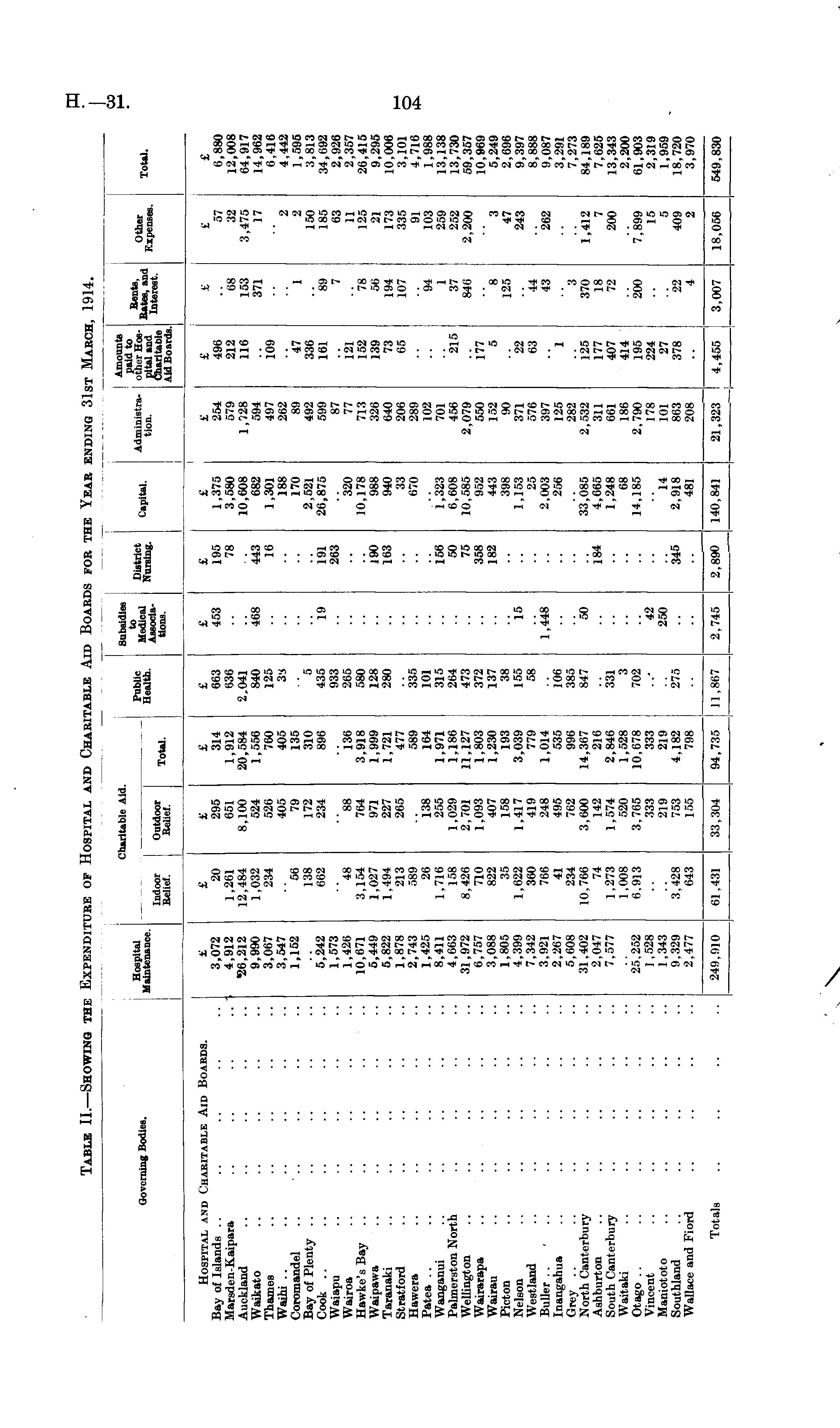 Table II.—Showing the Expenditure of Hospital and Charitable Aid Boards for the Year ending 31st March, 1914.
