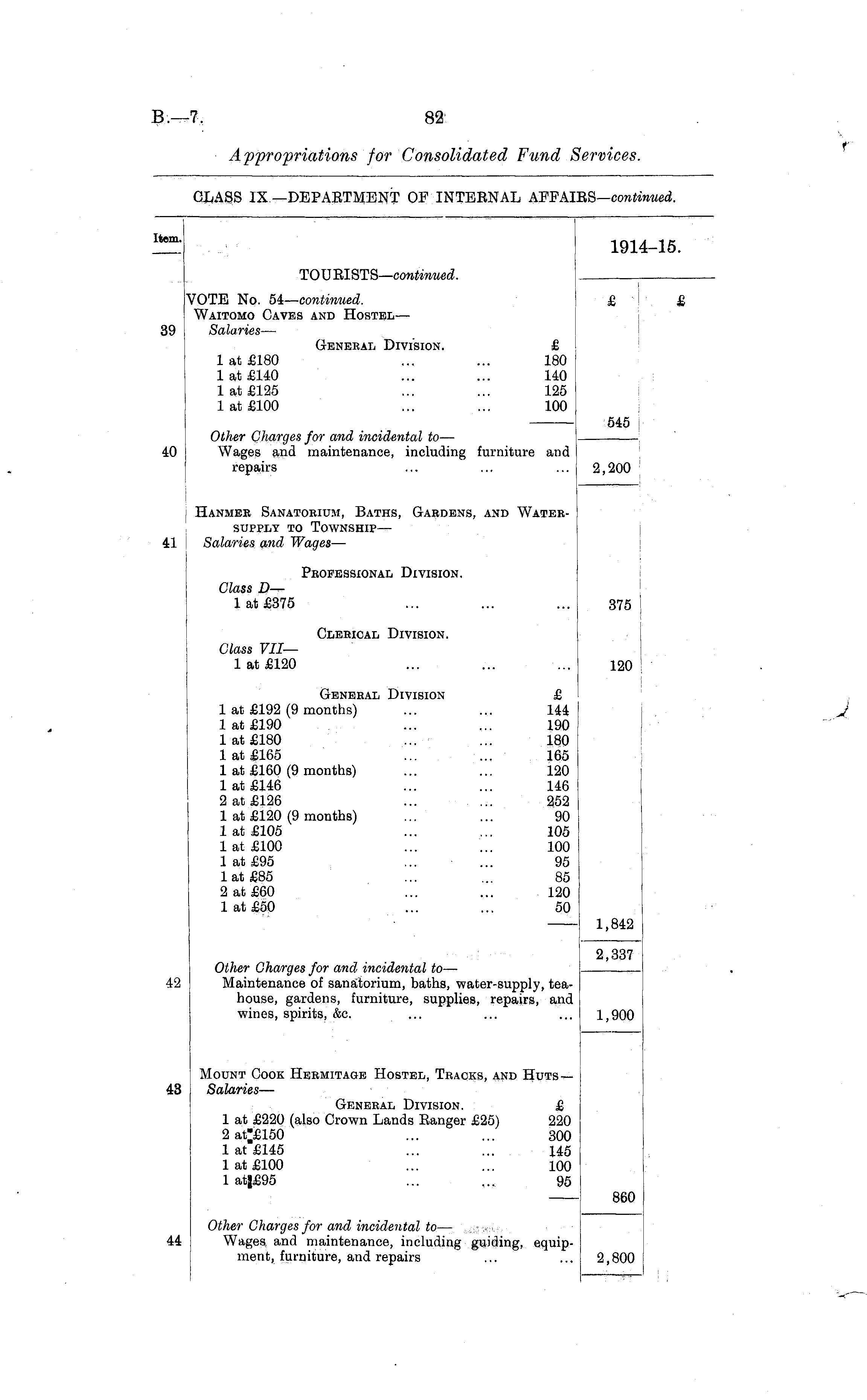 CLASS IX.—DEPARTMENT OF INTERNAL AFFAIRS— continued.