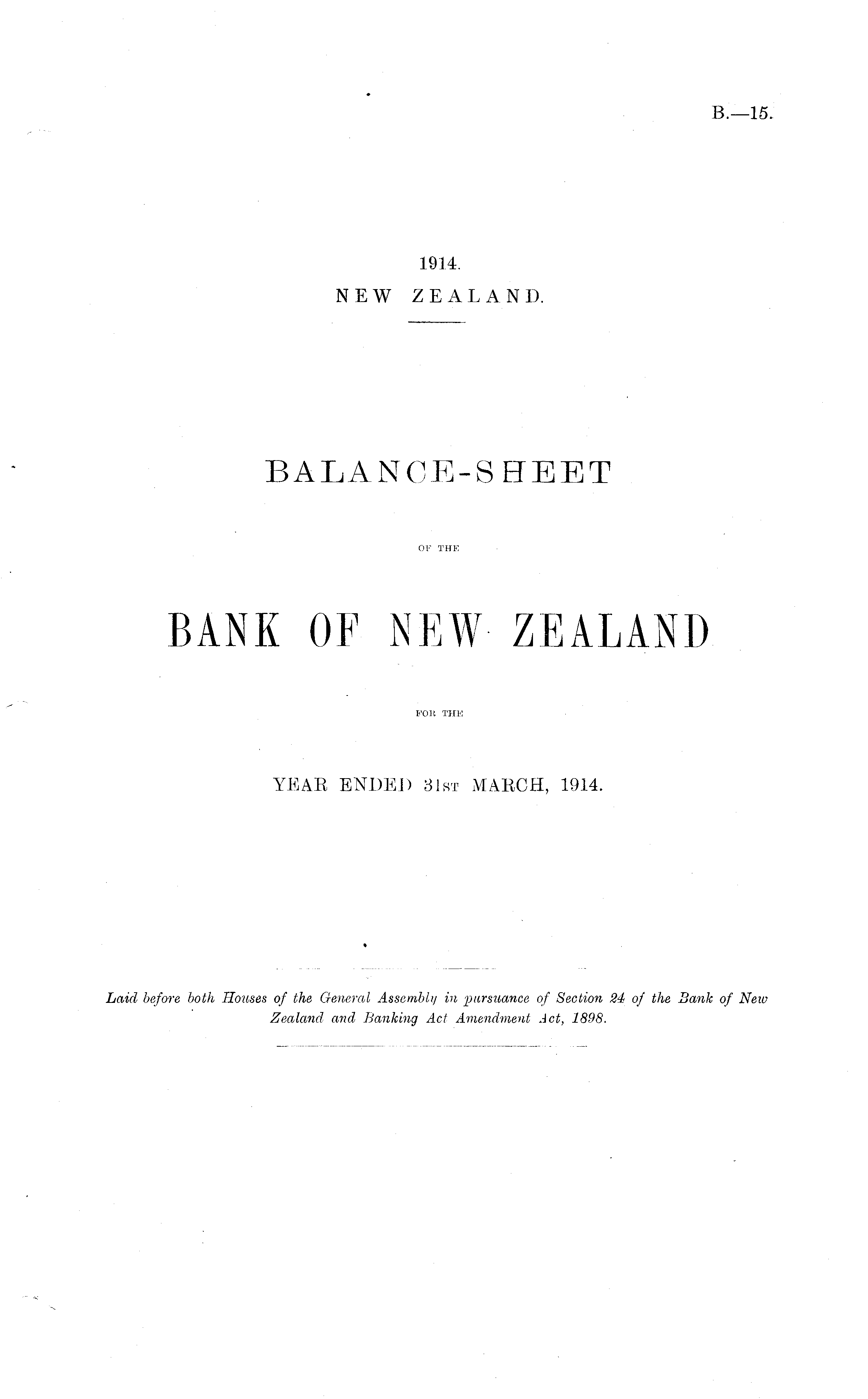 Laid before both Houses of the General Assembly in pursitance of Section 24 of the Bank of New Zealand and Banking Act Amendment Act, 1898.