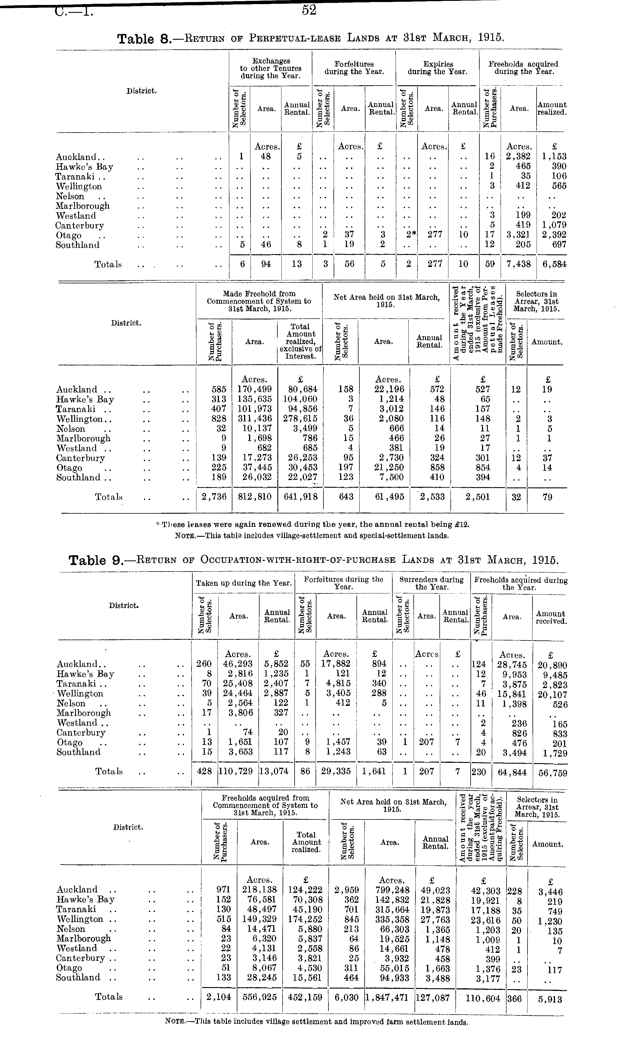 Table 8. —Return of Perpetual-lease Lands at 31st March, 1915.