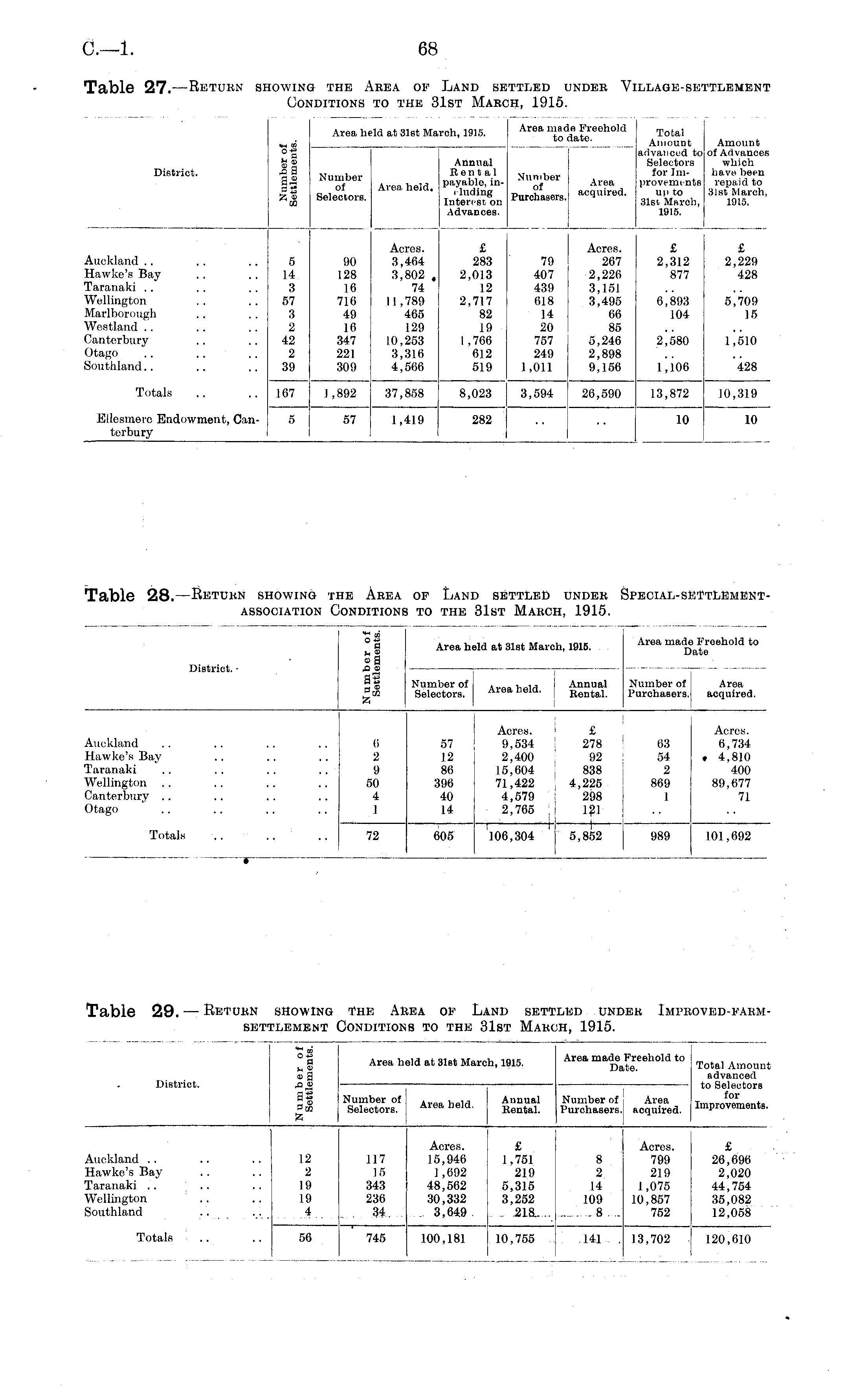 Table 27. —Return showing the Area of Land settled under Village-settlement Conditions to the 31st March, 1915.