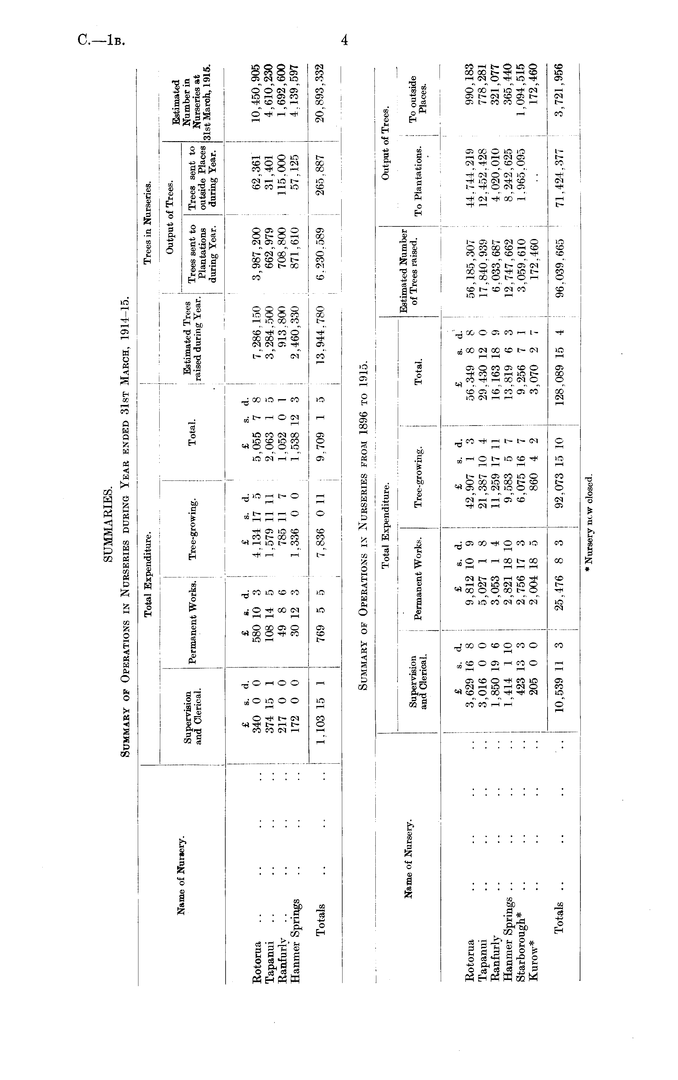 SUMMARIES. Summary of Operations in Nurseries during Year ended 31st March, 1914-15.