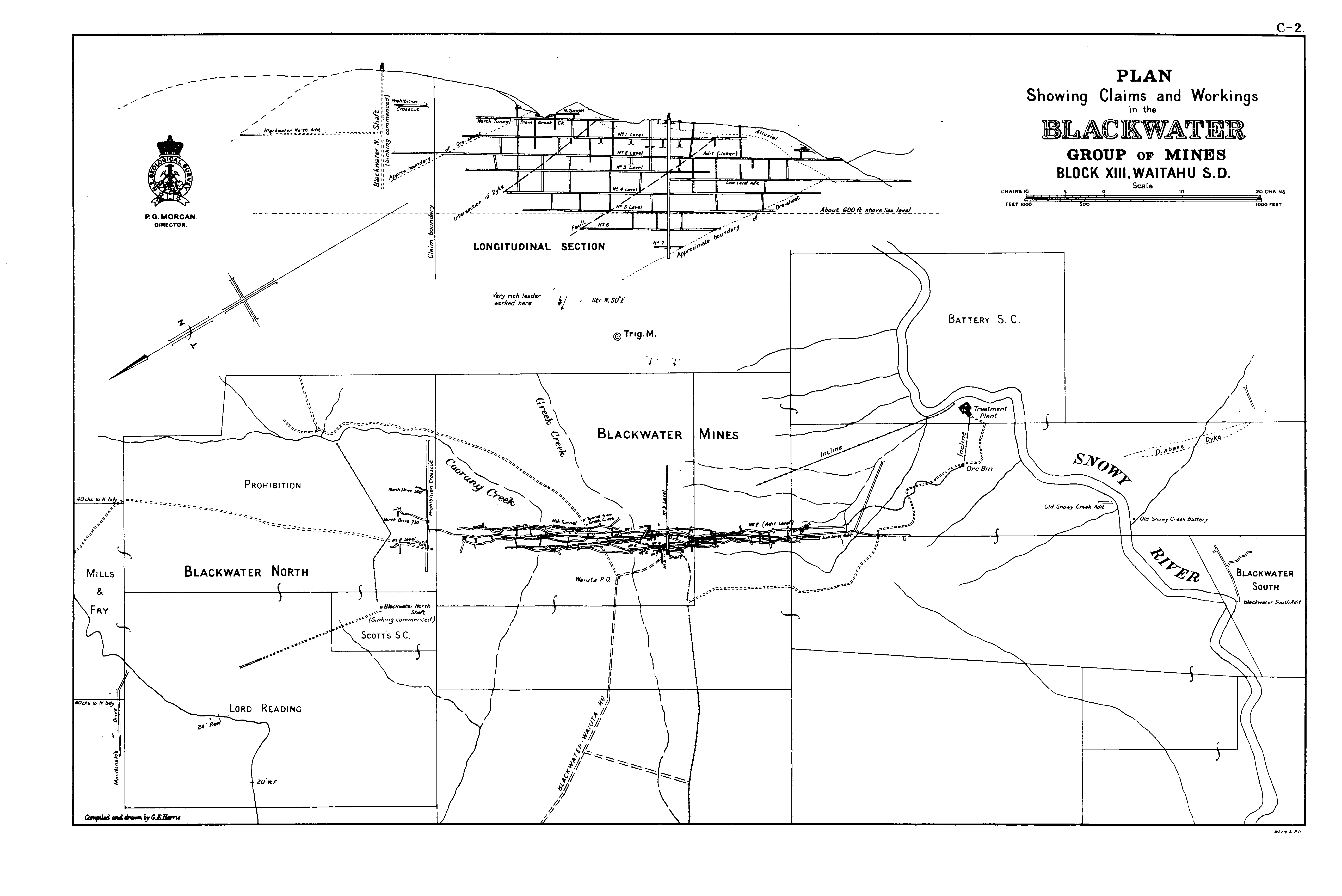 PLAN Showing Claims and Workings in the BLACKWATER GROUP of MINES BLOCK XIII, WAITAHU S.D.