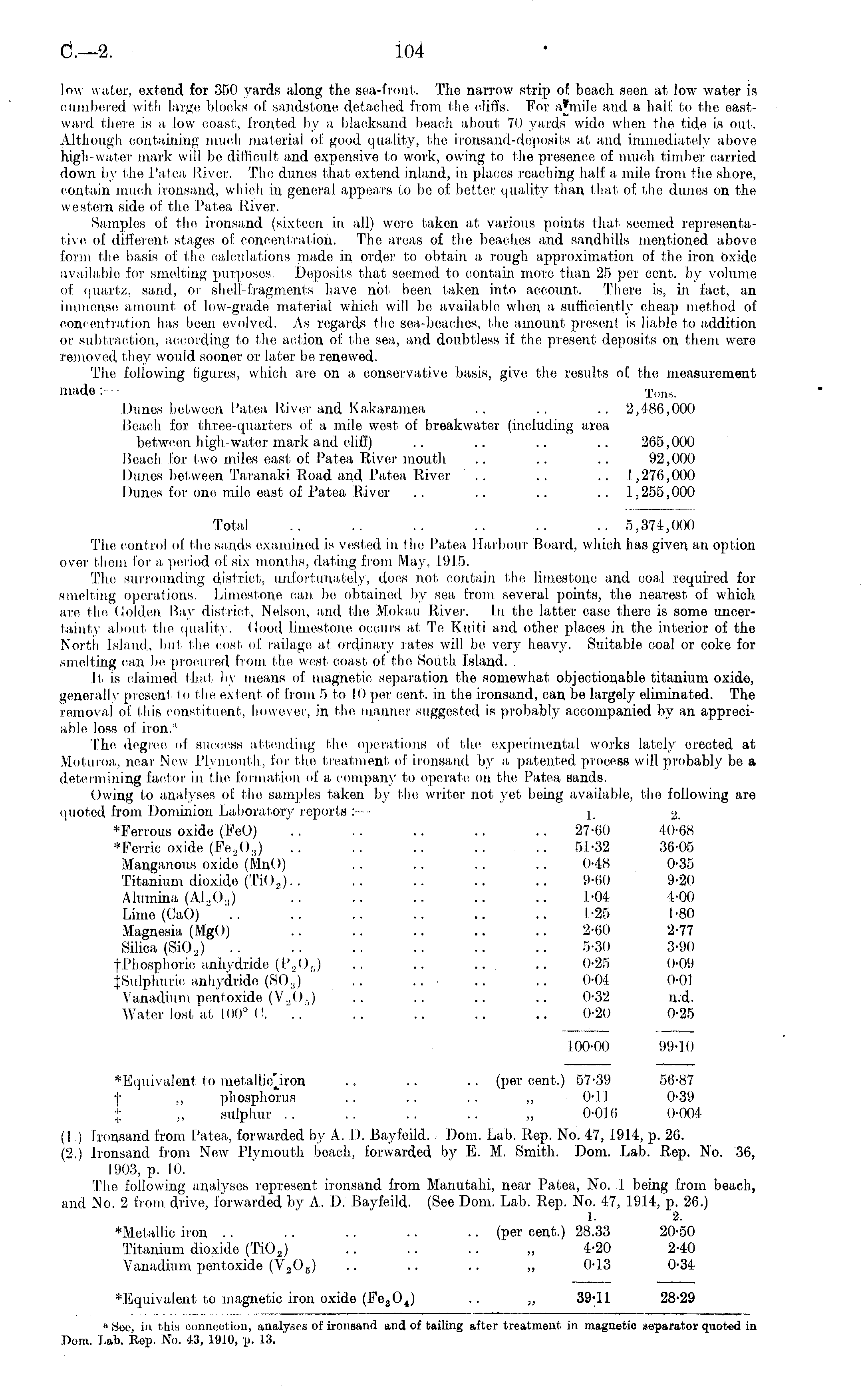 11 See, in this oonneetion, analyses of ironsand and of tailing after treatment in magnetic separator quoted in Dom. Lab. Rep. No. 43, 1910, p. 18.
