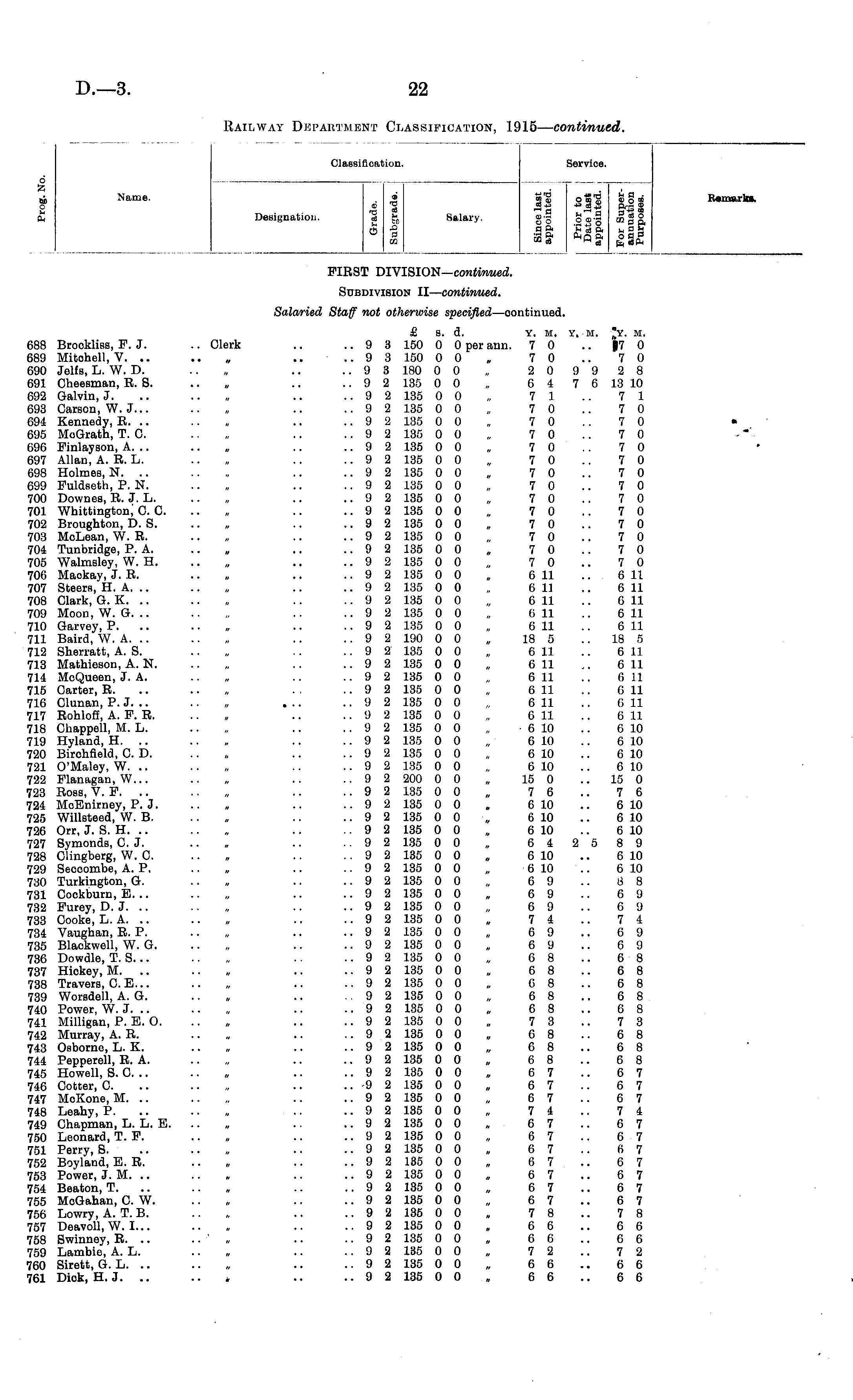 Railway Department Classification, 1915 — continued.