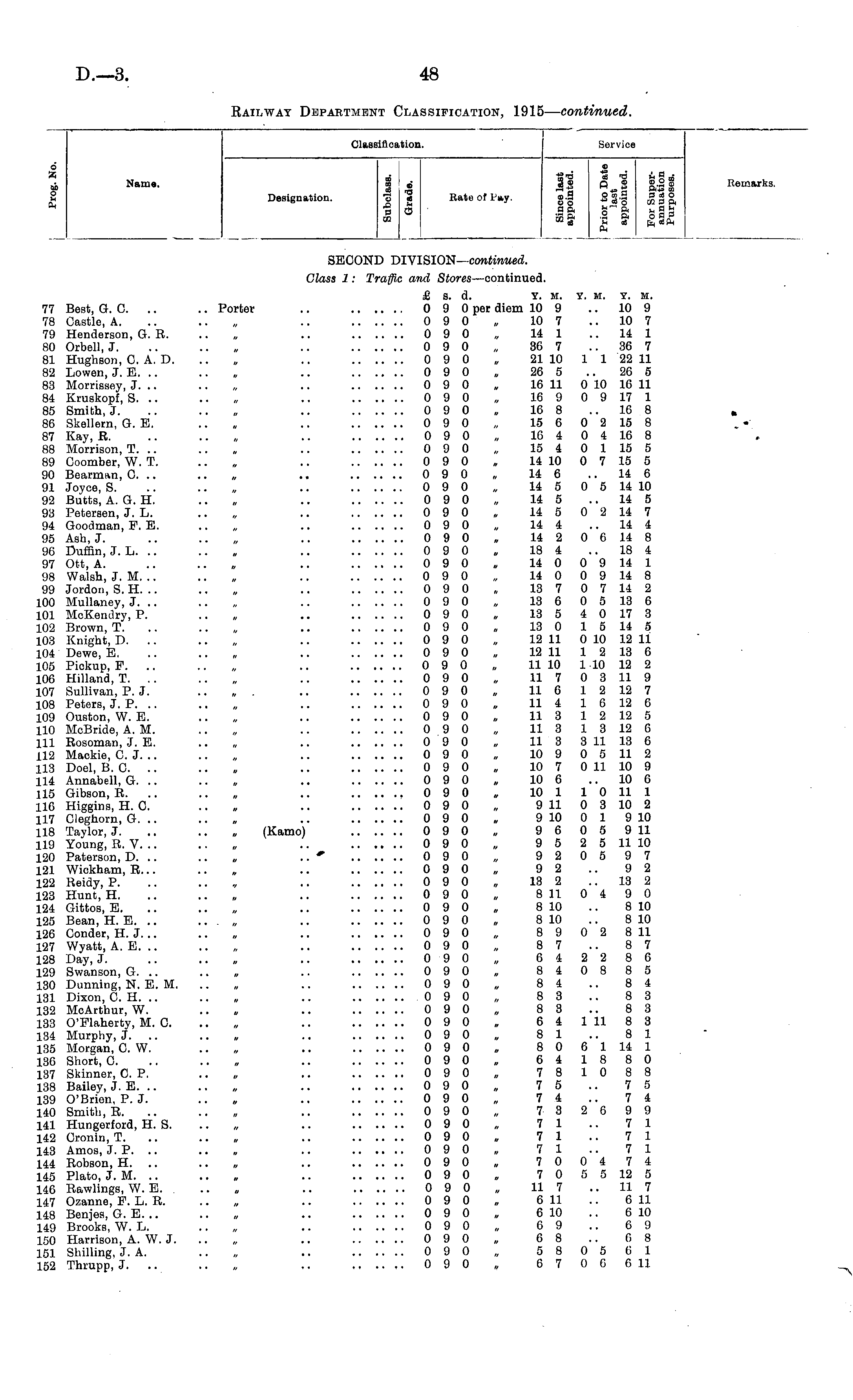 Railway Department Classification, 1915 — continued.
