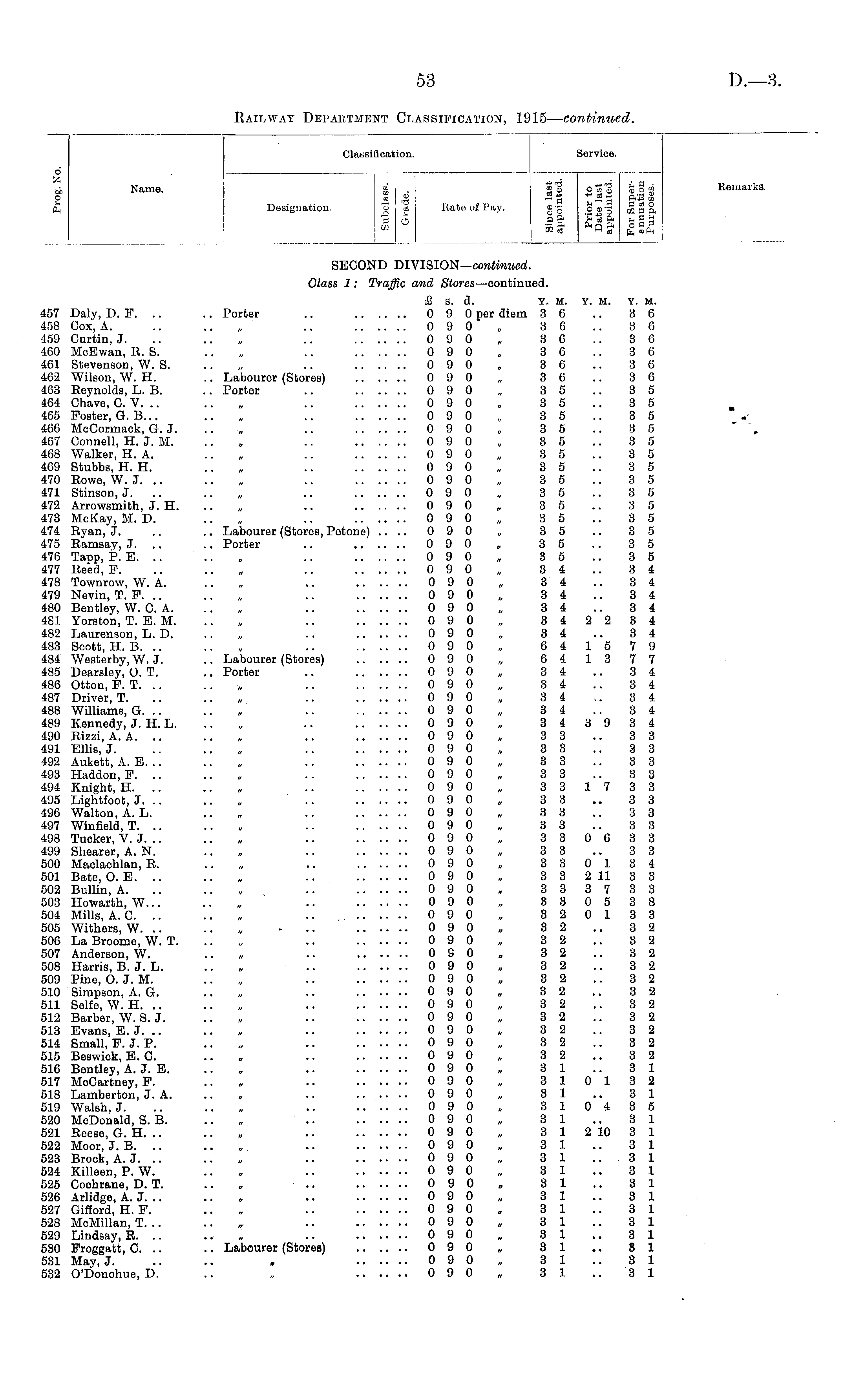 Railway Department Classification, 1915— continued.