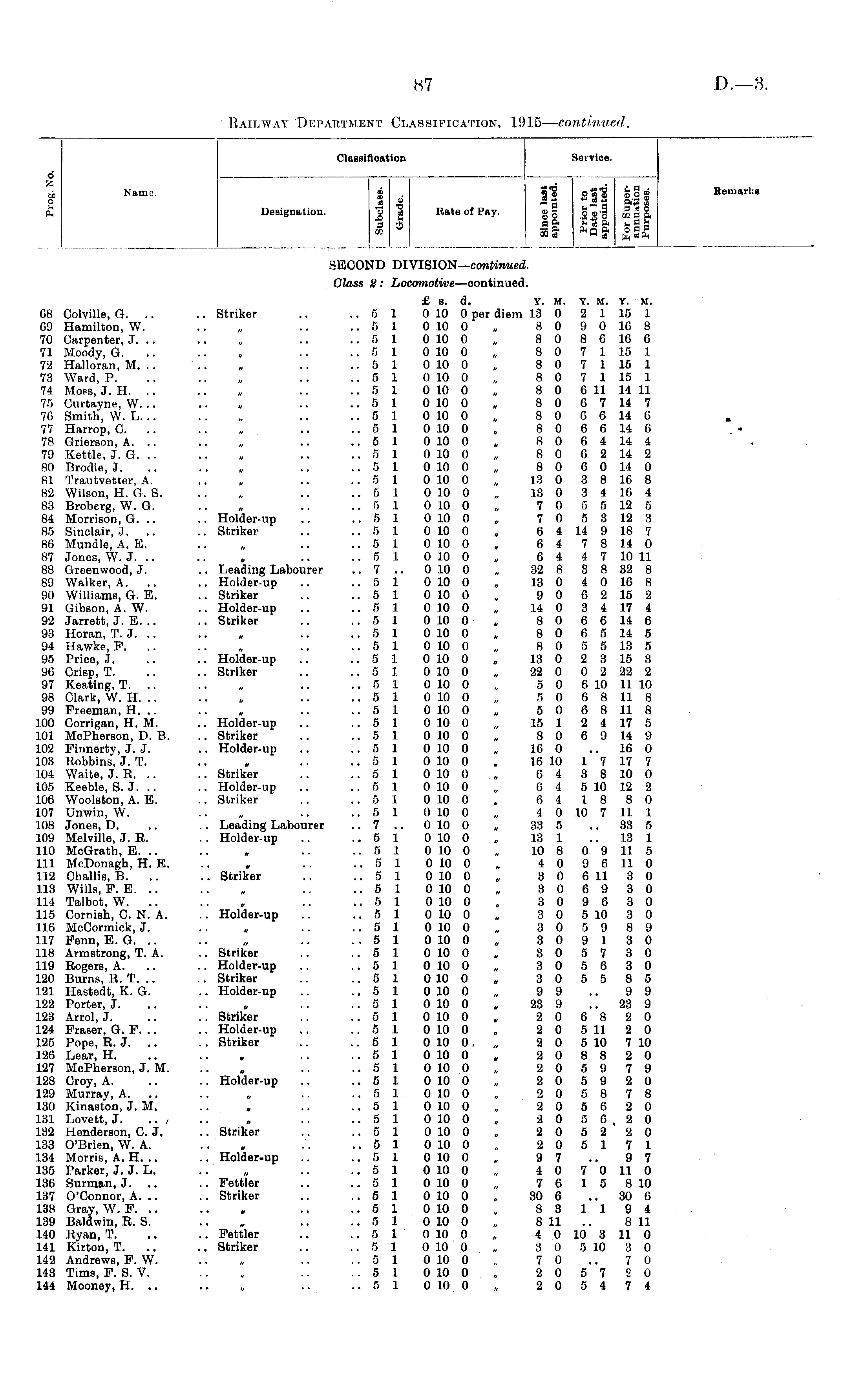 Railway Department Classification, 1915— continued.