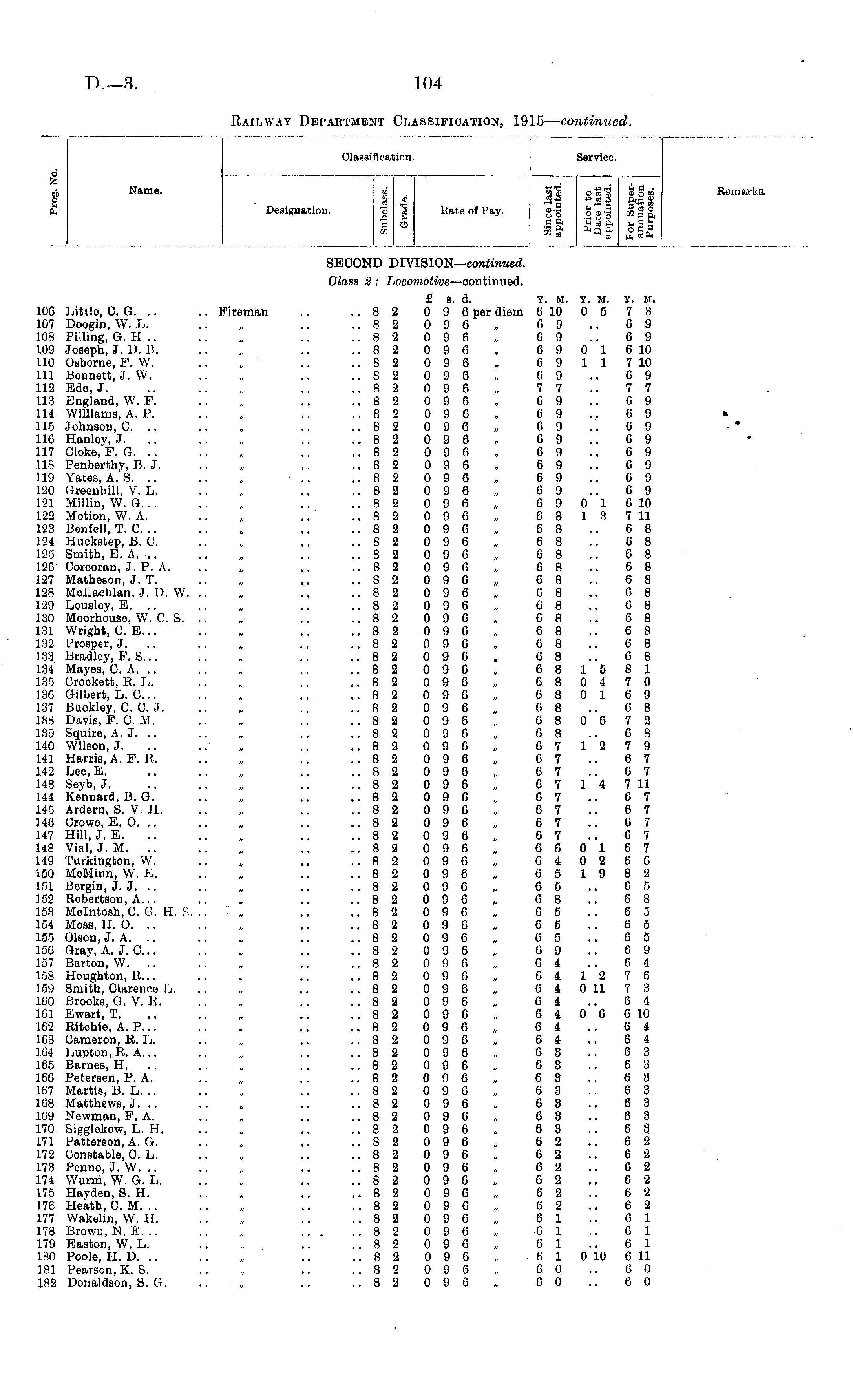 Railway Department Classification, 1915 — continued.