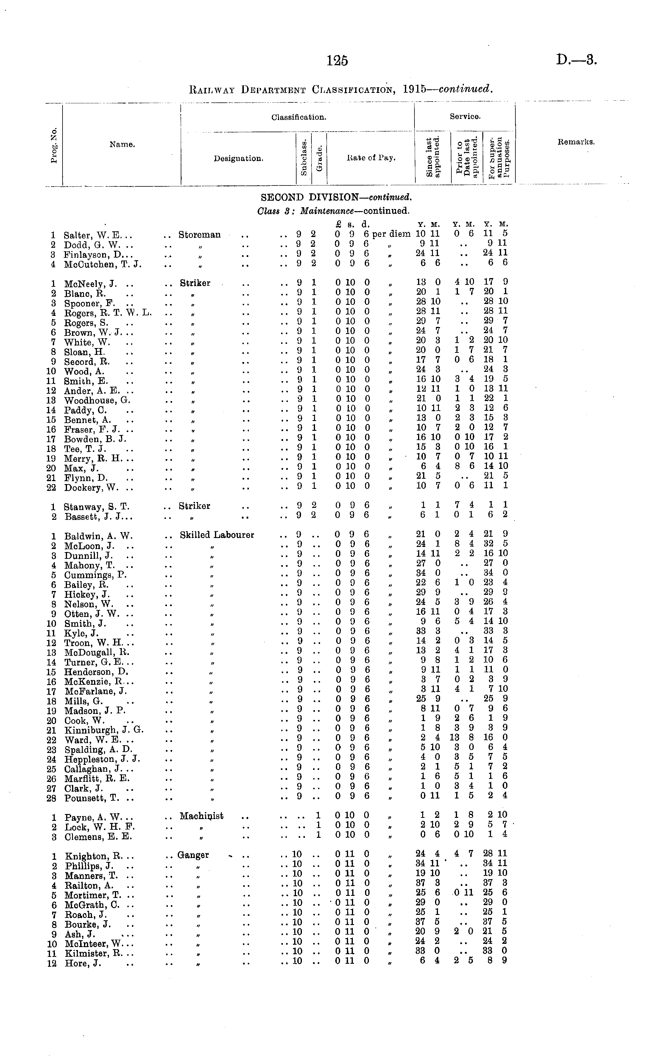 Railway Department Classification, 1915 — continued.