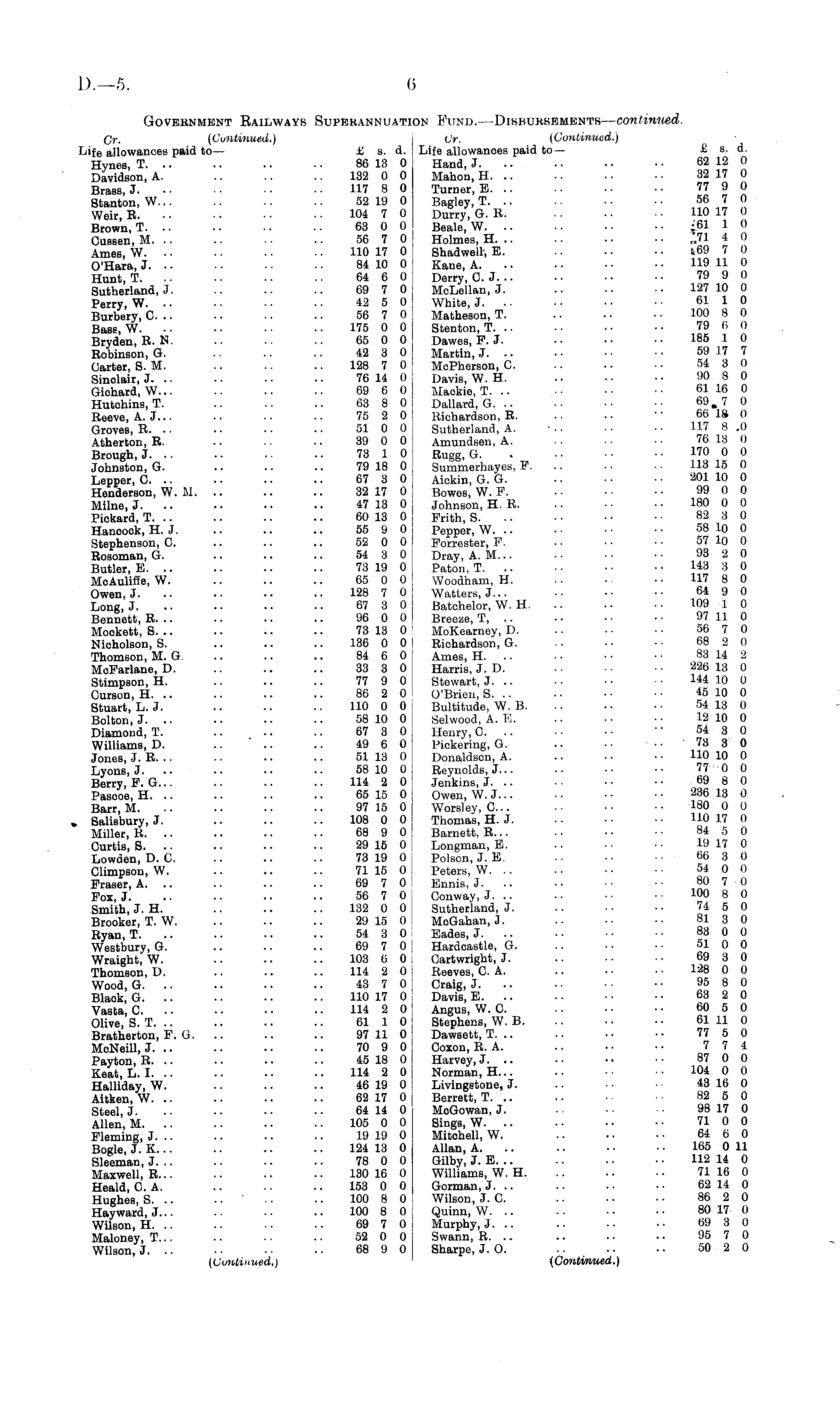 Government Railways Superannuation Fund.—Disbursements — continued. Cr. (Continued.) Cr. (Continued.) Infe allowances paid to— £ s. d. Life allowances paid to— & s. d. Hynes, T. .. .. .. .. 86 13 0 Hand, J. .. • • • ■ 62 12 0 Davidson, A. .. .. .. 182 0 0 Mahon, H. .. .. .. • • 32 17 0 Brass, J. ■ ■ 117 8 0 Turner, E. .. .. ■ ■ • ■ 77 9 0 Stanton, W... .. .. .. 52 19 0 Bagley, T. .. •• •■ 56 7 0 Weir, R. .. • • ■ ■ • ■ 104 7 0 Durry, G. R. .. • ■ ■ • HO 17 0 Brown, T. .. .. .. 63 0 0 Beale, W. .. •• •• •■ £61 1 0 Cussen, M. .. .. .. .. 56 7 0 Holmes, H. .. .. .. • • „7I 4 0 Ames, W. •• •■ •• .. 110 17 0 Shad well', E. .. .. •• t,69 7 0 O'Hara, J. .. • • • • 84 10 0 Kane, A. .. • • ■ ■ • • 119 11 0 Hunt, T 64 6 0 Derry, C.J 79 9 0 Sutherland, J. .. .. .. 69 7 0 MoLellan, J. .. •• •• 127 10 0 Perry, W. .. • ■ • • .. 42 5 0 White, J. .. ••••• ■ 61 1 0 Burbery, C. .. .. .. .. 56 7 0 Matheson, T. .. •■ •• 100 8 0 Bass, W. •• •■ •• •• 175 0 0 Stenton, T. .. •• •• 79 6 O Bryden, R. N. .. .. 65 0 0 Dawes, F. J. •• •• ■• 185 1 0 Robinßon, G. .. .. 42 3 0 Martin, J. .. • ■ • • • • 59 17 7 Carter, S. M. .. .. .. 128 7 0 McPherson, C. •. ■ • • • 54 3 0 Sinclair, J. .. .. .. .. 76 14 0 Davis, W. H. .. •• •• 90 8 0 Giohard, W... .. .. .. 69 6 0 Maokie, T. .. .. ■• ■• 61 16 0 Hutchins, T. .. .. .. 63 8 0 Dallard, G. .. •• •• •■ 69,7 0 Reeve, A. J... .. .. .. 75 2 0 Richardson, R. •• •■ " 66 18 0 Groves, R. .. .. •• .. 51 0 0 Sutherland, A. •.. .. •• 117 8.0 Atherton, R. .. .. .. 39 0 0 Amundsen, A. .. .. •■ 76 13 0 Brough, J 73 1 0 Rugg, G 170 0 0 Johnßton, G. .. .. .. 79 18 0 Summerhayes, F. .. .. 113 15 0 Lepper, C. .. .. .. .. 67 3 0 Aickin, G. G. .. • • • • 201 10 0 Henderson, W. M. .. .. .. 32 17 0 Bowes, W. F. ... •■ •• 99 0 0 Milne, J 47 13 0 Johnson, H. R 180 0 0 Pickard, T. .. .. .. .. 60 13 0 Frith, S. • • • • • • 82 3 0 Hancock, H.J. .. .. .. 55 9 0 Pepper, W. .. •• •• •• 58 10 0 Stephenson, C. .. .. .. 52 0 0 Forrester, F. • ■ • ■ • • 57 10 0 Rosoman, G. .. .. .. 54 3 0 Dray, A.M... •• •• •• 93 2 0 Butler, E. .. .. .. .. 73 19 0 Paton, T. .. ■■ •• •• 143 3 0 MoAuliffe, W. .. .. .. 65 0 0 Woodham, H. .. • •• 117 8 0 Owen, J. .. •■ •• •• 128 7 0 Watters, J... •• •■ •• 64 9 0 Long, J. .. •■ •• •• 67 3 0 Batchelor, W. H. .. •• •■ 109 1 0 Bennett, R... .. .. .. 96 0 0 Broono, T, .. •• •■ •• 97 11 0 Mookett, S. .. .. .. .. 73 13 0 MoKearnoy, D. .. . • ■ ■ 56 7 0 Nicholson, S. .. .. .. 136 0 0 Richardson, G. .. • • • • 68 2 0 Thomson, M. G. .. .. .. 84 6 0 Ames, H. .. ■ • • • ■ ■ 83 14 2 MoFarlane, D. .. .. .. 33 3 0 Harris, J. D. • • 226 13 0 Stimpßon, H. .. .. .. 77 9 0 Stewart, J. .. ••• • ■ ■ 144 10 0 Curson, H. .. .. .. .. 86 2 0 O'Brien, S. .. • • • • • • 45 10 0 Stuart, L. J. .. .. .. 110 0 0 Bultitude, W. B. .. .. • • 54 13 0 Bolton, J. .. ■ • • • .. 58 10 0 Selwood, A. E. .. • • • • 12 10 0 Diamond, T. .. .. .. 67 3 0 Henry, C. .. • • • • '' 54 3 0 Williams, D. .. ' .. .. 49 6 0 Pickering, G. .. • • .. 73 3 0 Jones, J. R... .. •• ■• 51 13 0 Donaldson, A. .. .. •• HO 10 0 Lyons, J. .. .. .. .. 58 10 0 Reynolds, J... .. •■ •• 77 0 0 Berry, F. G... .. .. .. 114 2 0 Jenkins, J. .. ■• •• ■• 69 8 0 Pasooe, H. .. .. .. .. 65 15 0 Owen, W.J... •• ■• ■• 236 13 0 Barr, M. .. .. .. .. 97 15 0 Worsley, C... 180 0 0 » Salisbury, J. .. .. .. 108 0 0 [ Thomas, H. J. • • • • ■ • HO 17 0 Miller, R. .. .. .. .. 68 9 0 i Barnett, R... ■ .. • • ■ • 84 5 0 Curtis, S. .. .. ■■ .. 29 15 0 | Longman, E. .. •■ •• 19 17 0 Lowden, D. C. .. .. .. 73 19 0 Poison, J. E. .. ■• •• ■66 3 0 Climpson, W. .. .. .. 71 15 0 Peters, W. .. •• •• •■ 54 0 0 Fraser, A. .. .. .. .. 69 70 I Ennis, J. .. .. ■ ■ • ■ 80 7 0 Fox, J. .. • • • • ••56 7 0 Conway, J. .. ••• ■ • ■ 100 8 0 Smith, J. H. .. .. .. 132 0 0 Sutherland, J. .. ■ • • • 74 5 0 Brooker, T. W. .. .. .. 29 15 0 MoGahan, J. .. •• •• 81 3 0 Ryan, T. .. .. •. .. 54 3 0 Eades, J. .. - • ■ • • • 83 0 0 Westbury, G. .. .. .. 69 7 0 Hardoaatle, G. .. ■ • • • 51 0 0 Wraight, W. .. .. .. 103 6 0 Oartwright, J. .. • • 69 3 0 Thomson, D. .. .. .. 114 2 0 Reeves, C. A. .. • • • • 128 0 0 Wood, G. .. .. • • .. 43 7 0 Craig, J. • • ■ ■ • • 95 8 0 Blaok, G. .. .. .. .. 110 17 0 Davis, E. .. .. • • ■ • 63 2 0 Vasta, C. .. •. ■ • • • 114 2 0 Angus, W. C. .. ■ • ■ • 60 5 0 Olive, S. T. .. .. .. .. 61 1 0 Stephens, W. B. .. • • • • 61 11 0 Bratherton, F. G. .. .. .. 97 11 0 Dawsett, T. .. .-. • • • • 77 5 0 McNeill, J. .. •• •• ■• 70 9 0 Coxon, R. A. .. •• •• 7 7 4 Payton, R. .. ■• •• •■ 45 18 0 Harvey, J. .. •• •• ■• 87 0 0 Keat, L. I. .. .. •• .. 114 2 0 Norman, H... .. •■ 104 0 0 Halliday, W. • ■ • • • • 46 19 0 Livingstone, J. .. ■ • 43 16 0 Aitken, W. .. .. .. •■ 62 17 0 Berrett, T. .. .. ■• 82 5 0 Steel, J. • • • ■ • • • • 64 14 0 MoGowan, J. . • • ■ • 98 17 0 Allen, M. .. .. .. .. 105 0 0 Singß, W. .. •■ • • ■ ■ 71 0 0 Fleming, J. .. ■ • • • • • 19 19 0 Mitohell, W. .. • • • ■ 64 6 0 Bogle, J. X... .. .. .. 124 13 0 Allan, A. .. ■ • • • 165 011 Sleeman, J. .. .. .. .. 78 0 0 Gilby, J. E. .. .. .. ■ • 112 14 0 Maxwell, R .. •• 130 16 0 Williams, W. H. .. .. •• 71 16 0 Heald, O. A. .. .. .. 153 0 0 Gorman, J. .. .. • •
