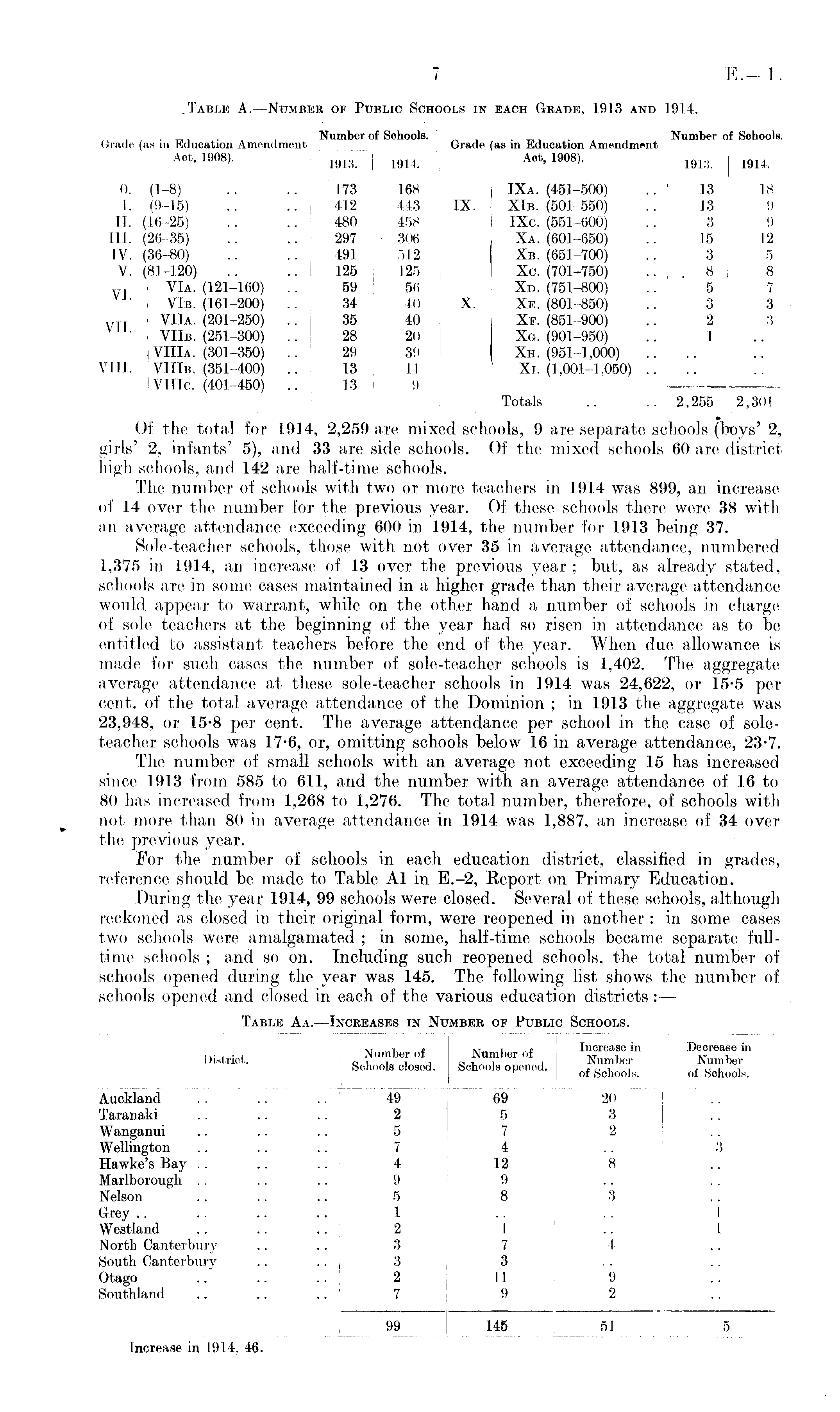 Table A.—Number of Public Schools in each Grade, 1913 and 1914.