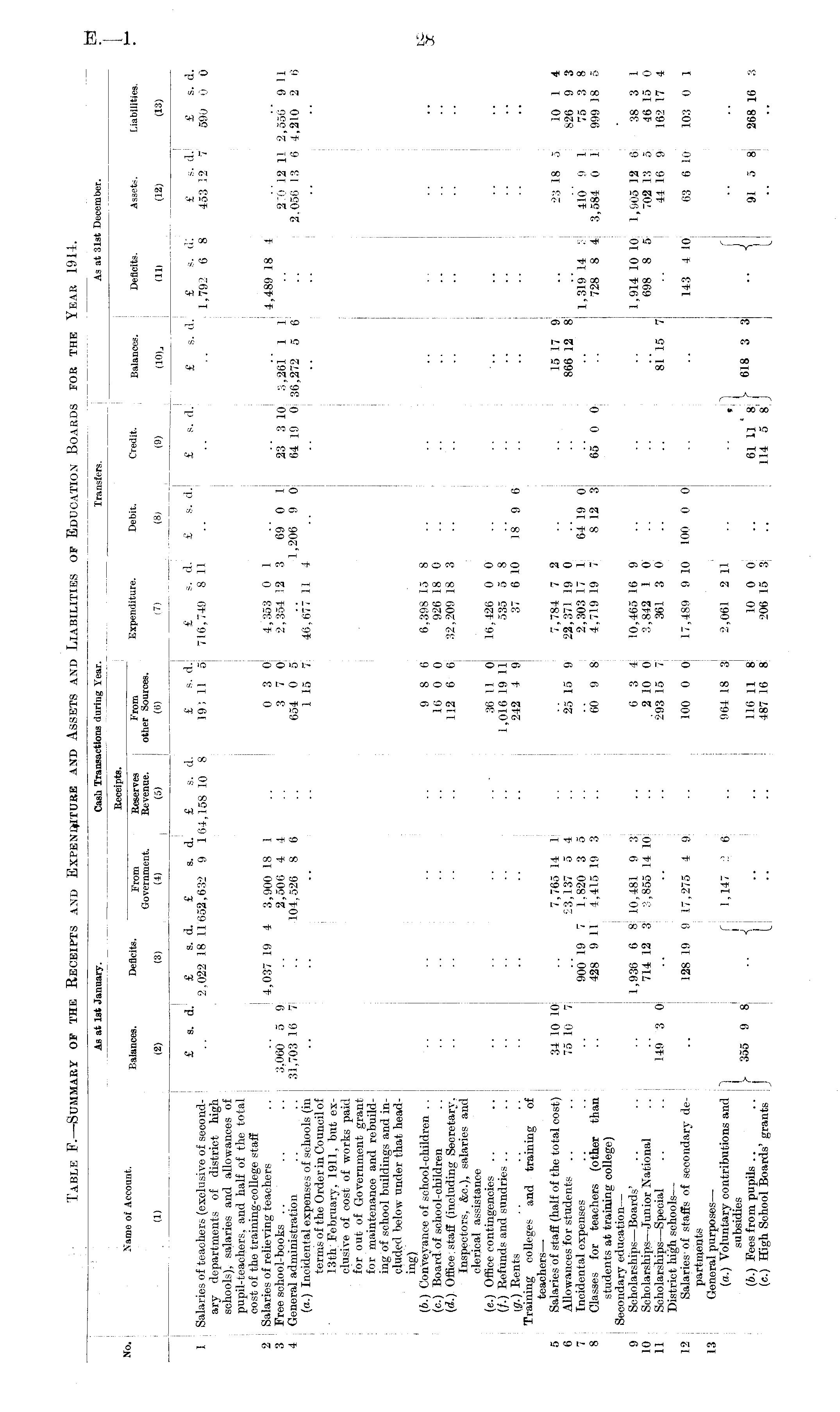 Table F.—Summary of the Receipts and Expenditure and Assets and Liabilities of Education- Boards for the Year 1914.