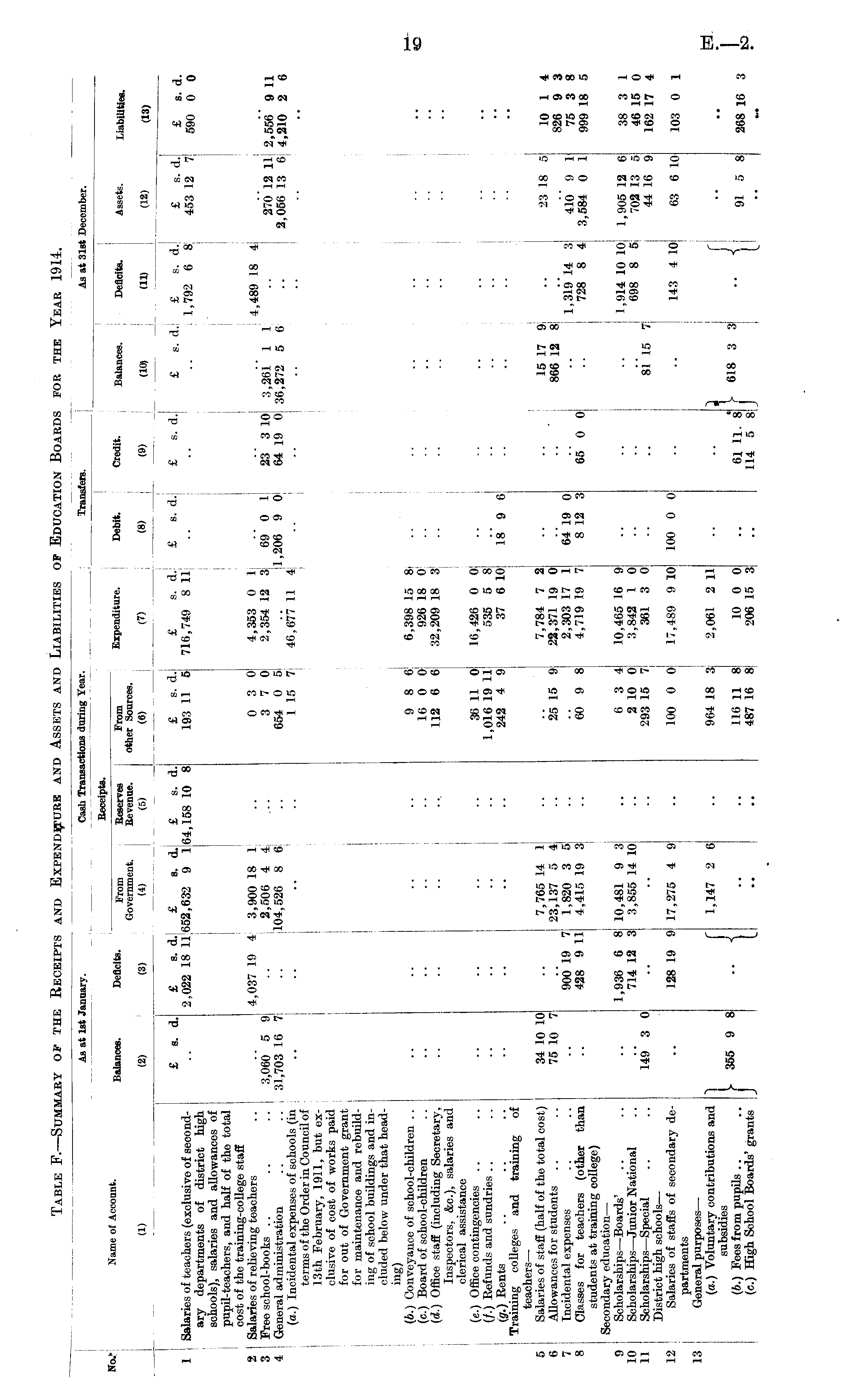 Table F.—Summary of the Receipts and Expenditure and Assets and Liabilities of Education Boards for the Year 1914.