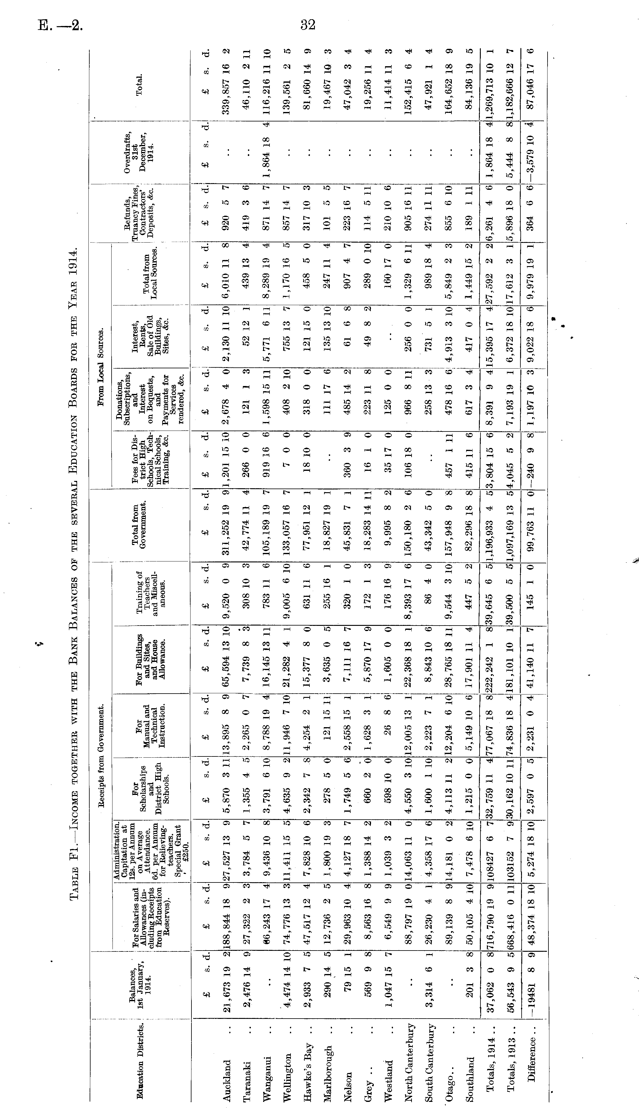 Table F1.—Income together with the Bank Balances of the several Education Boards for the Year 1914.