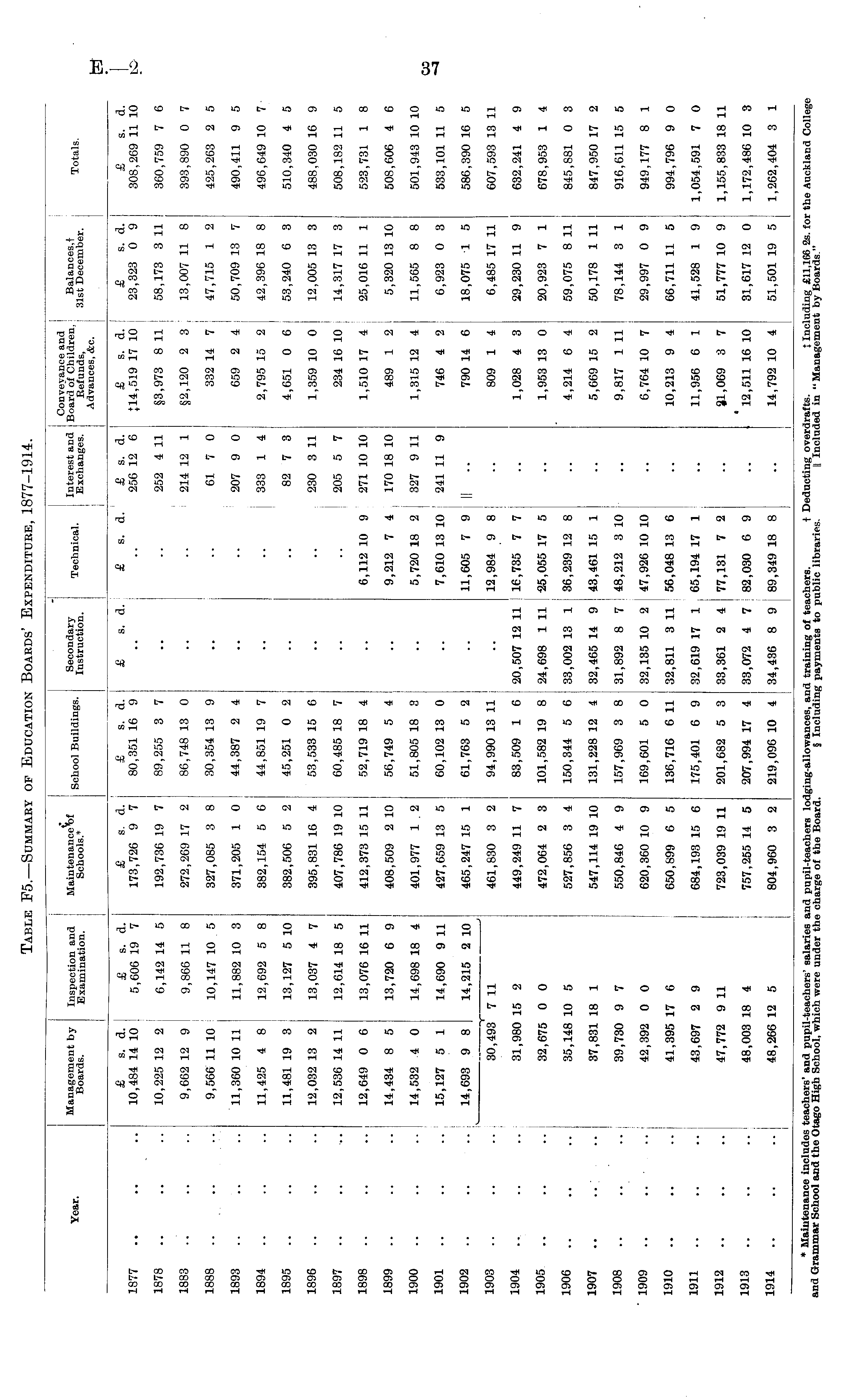 Table F5.—Summary of Education Boards' Expenditure, 1877-1914.