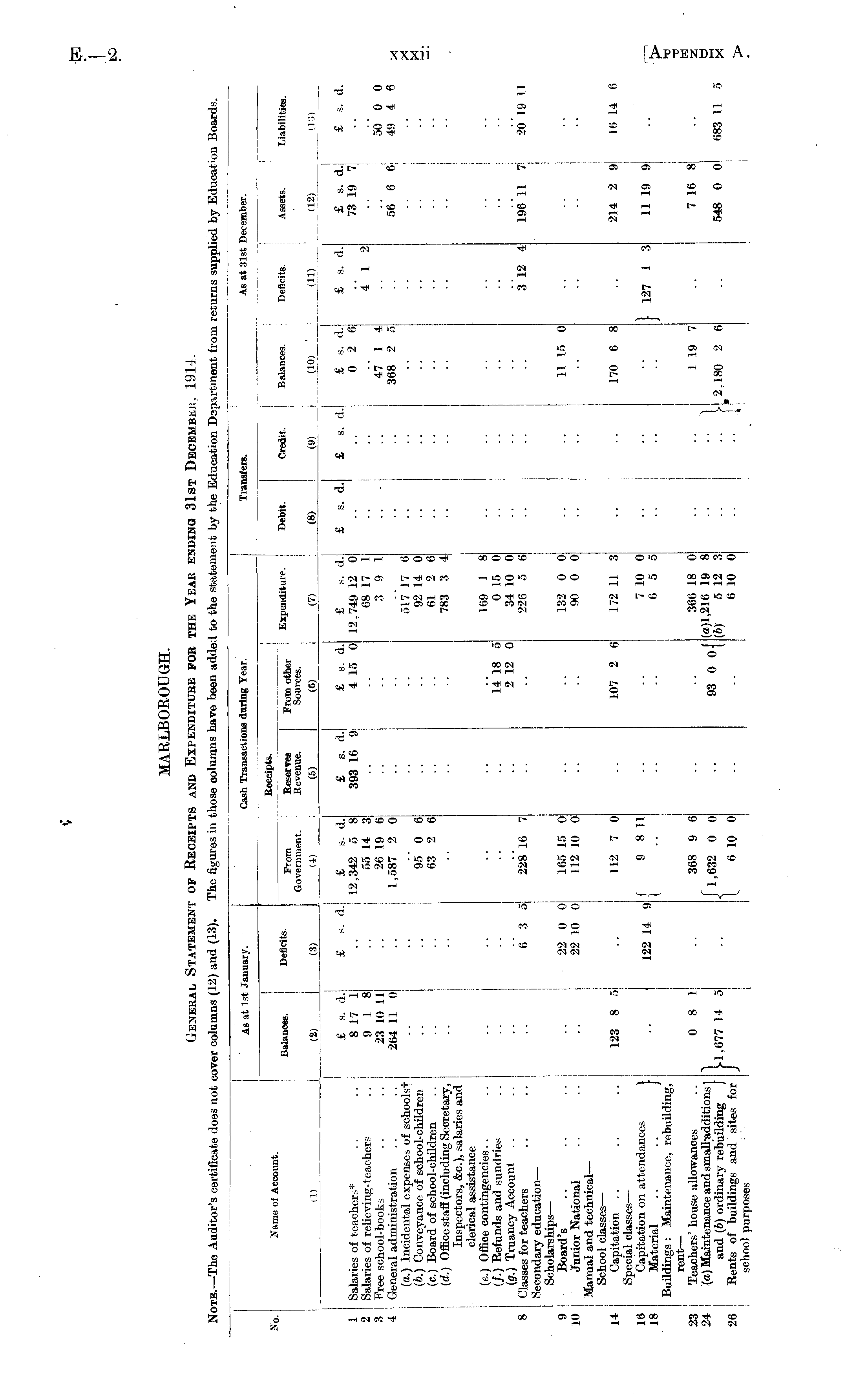 MARLBOROUGH. General Statement of Receipts and Expenditure for the Year ending 31st December, 1914.
