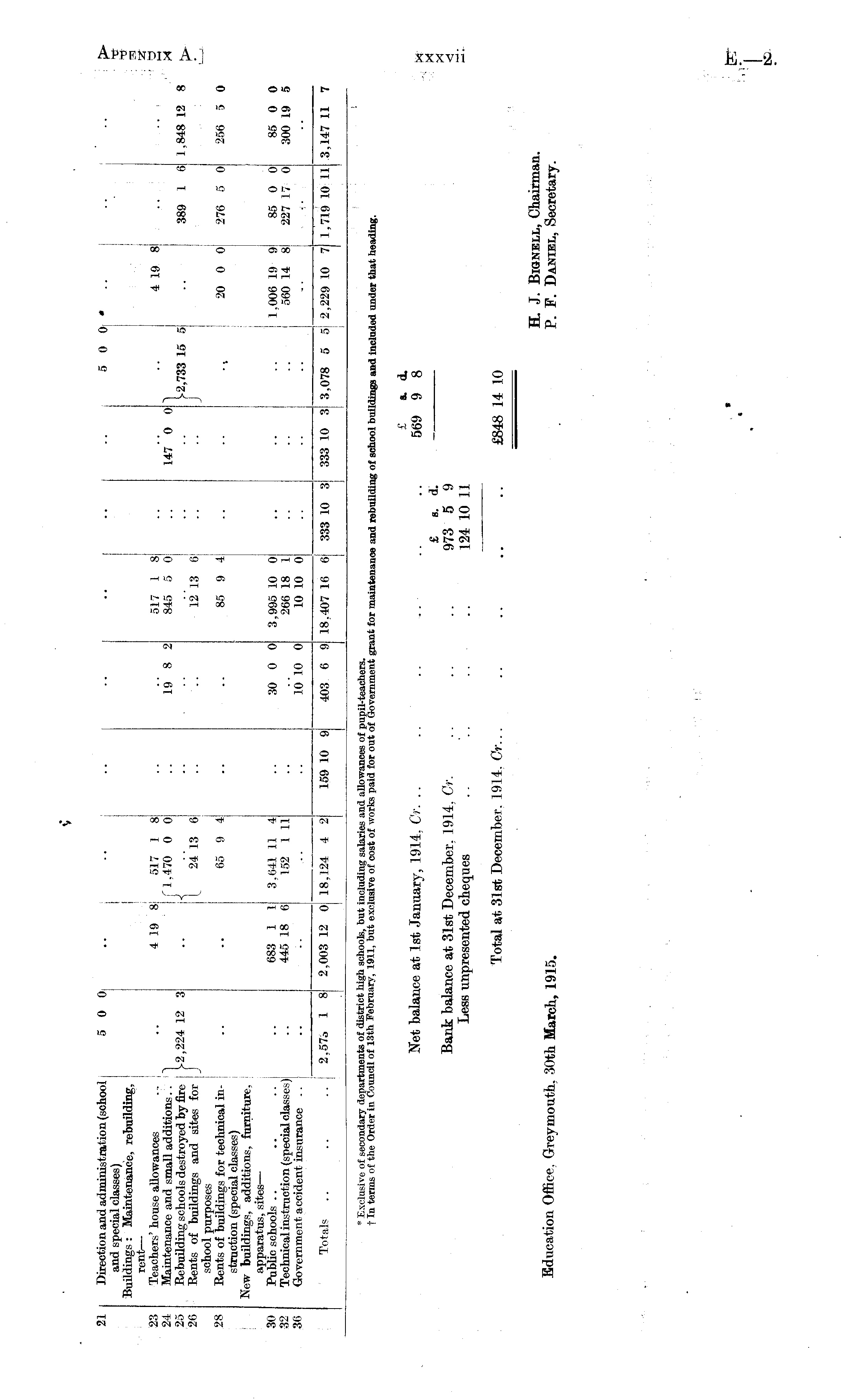 V 21 Direction and administration (school 500 .. .. .. .. .. .. .. 500*.. and special classes) Buildings: Maintenance, rebuilding, rent — 23 Teachers' house allowances ... .. 4 19 8 517 1 8 .. .. 517 1 8 .. .. .. 4 19 8 .. 24 Maintenance and small additions.. "| f 1,470 0 0 .. 19 8 2 845 5 0 .. 147 0 0 25 Rebuilding schools destroyed by fire !>2,224 12 3 .. ■< .. .. ... .. .. .. >2,733 15 5 .. 389 1 6 1,848 12 8 26 Rents of buildings and sites for j I 24 13 6 .. .. 12 13 6 j school purposes 28 Rents of buildings for technical in- .. .. 85 9 4 .. .. 85 9 4 .. .. .. 20 0 0 276 5 0 256 5 0 struction (special classes) New buildings, additions, furniture, j apparatus, sites — 30 Public schools .. .. .. j .. 683 1 1 3,641 11 4 .. 30 0 0 3,995 10 0 .. .. .. 1,006 19 9 85 0 0 85 0 0 32 Technical instruction (special classes)| .. 445 18 6 152 1 11 .. .. 266 18 1 .. .. .. 560 14 8 227 17 ; 0 300 19 5 36 Government accident insurance .. j .. • • .. .. 10 10 0 10 10 0 .. .. .. .. i • Totals .. .. ; 2.57b 1 8 2,003 12 0 18,124 4 2 159 10 9 403 6 9 18.407 16 6 333 10 3 333 10 3 3,078 5 5 2,229 10 7 1,719 10 11 3.147 11 7 1 ; ! , ; ' * Exclusive of secondary departments of district liigh schools, but including salaries and allowances of pupil-teachers. t In terms of the Order in Council of 13th February, 1911, but exclusive of cost of works paid for out of Government grant for maintenance and rebuilding of school buildings and included under that heading.