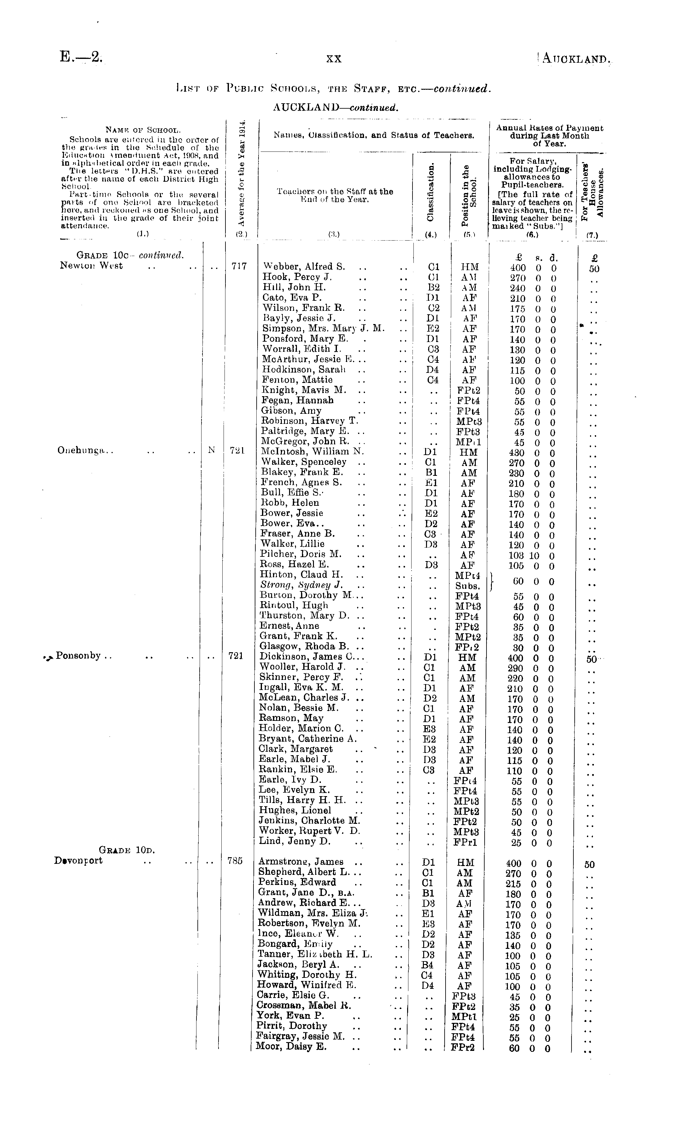 List of Public Schools, the Staff, etc. — continued. AUCKLAND— continued.