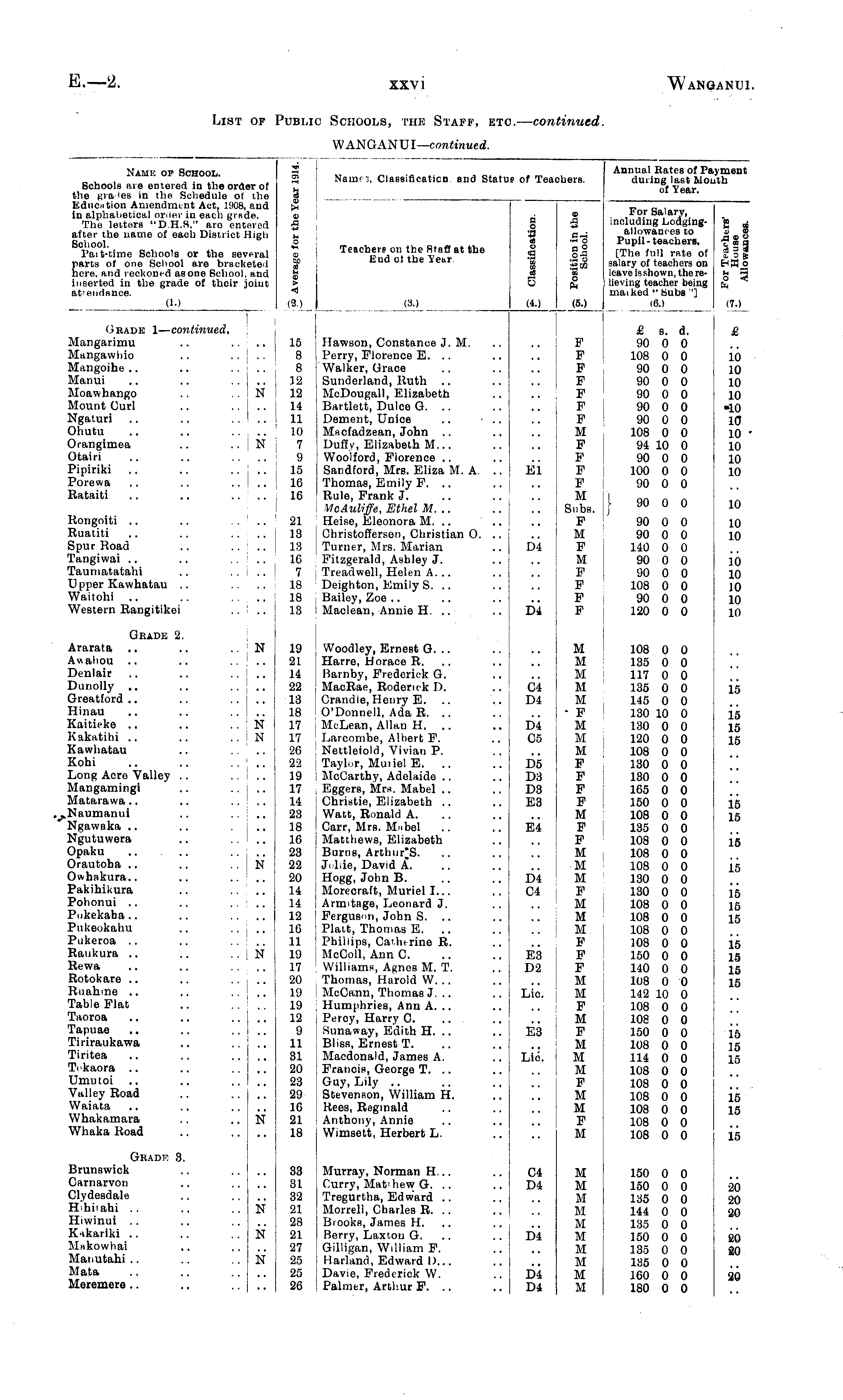 List of Public Schools, the Staff, etc.—continued. WANGANUI—continued.