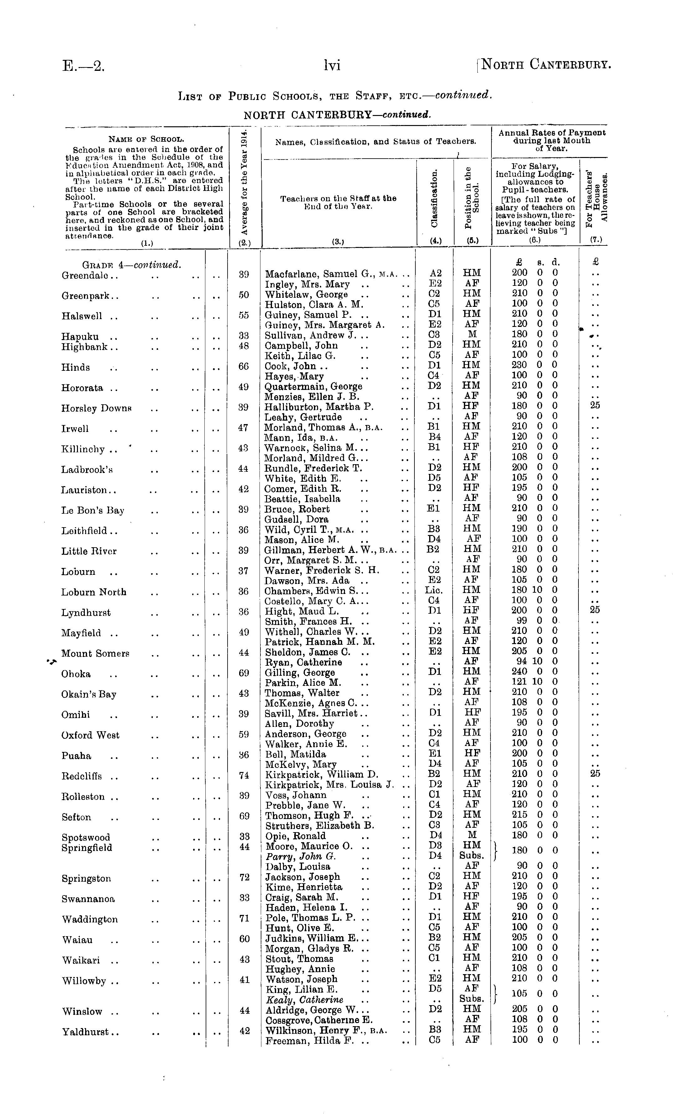 List of Public Schools, the Staff, etc. — continued. NORTH CANTERBURY— continued.