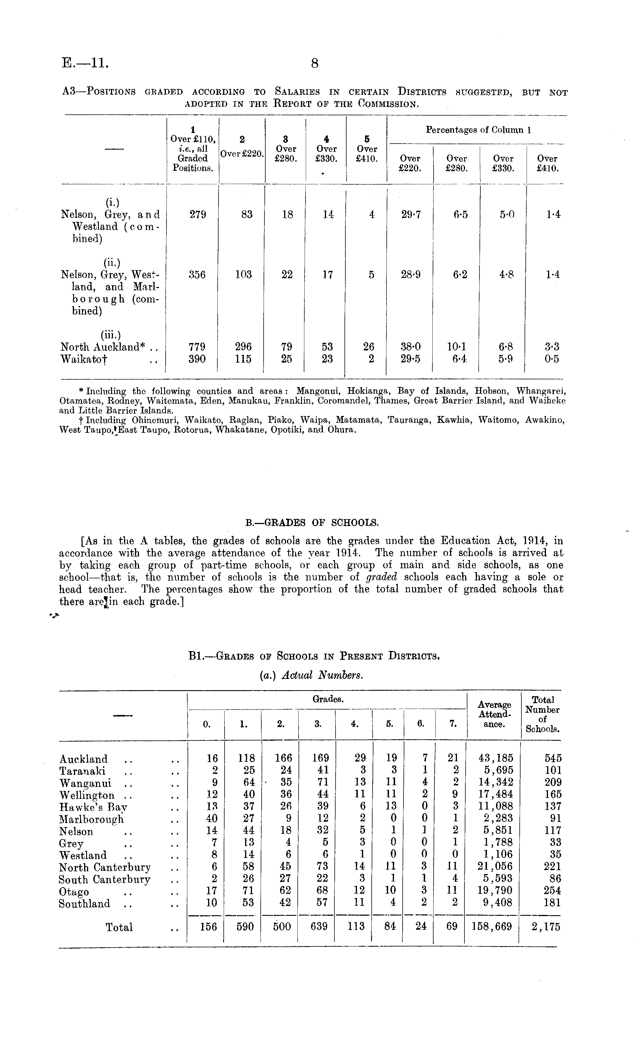B1.—Grades of Schools in Present Districts. (a.) Actual Numbers.