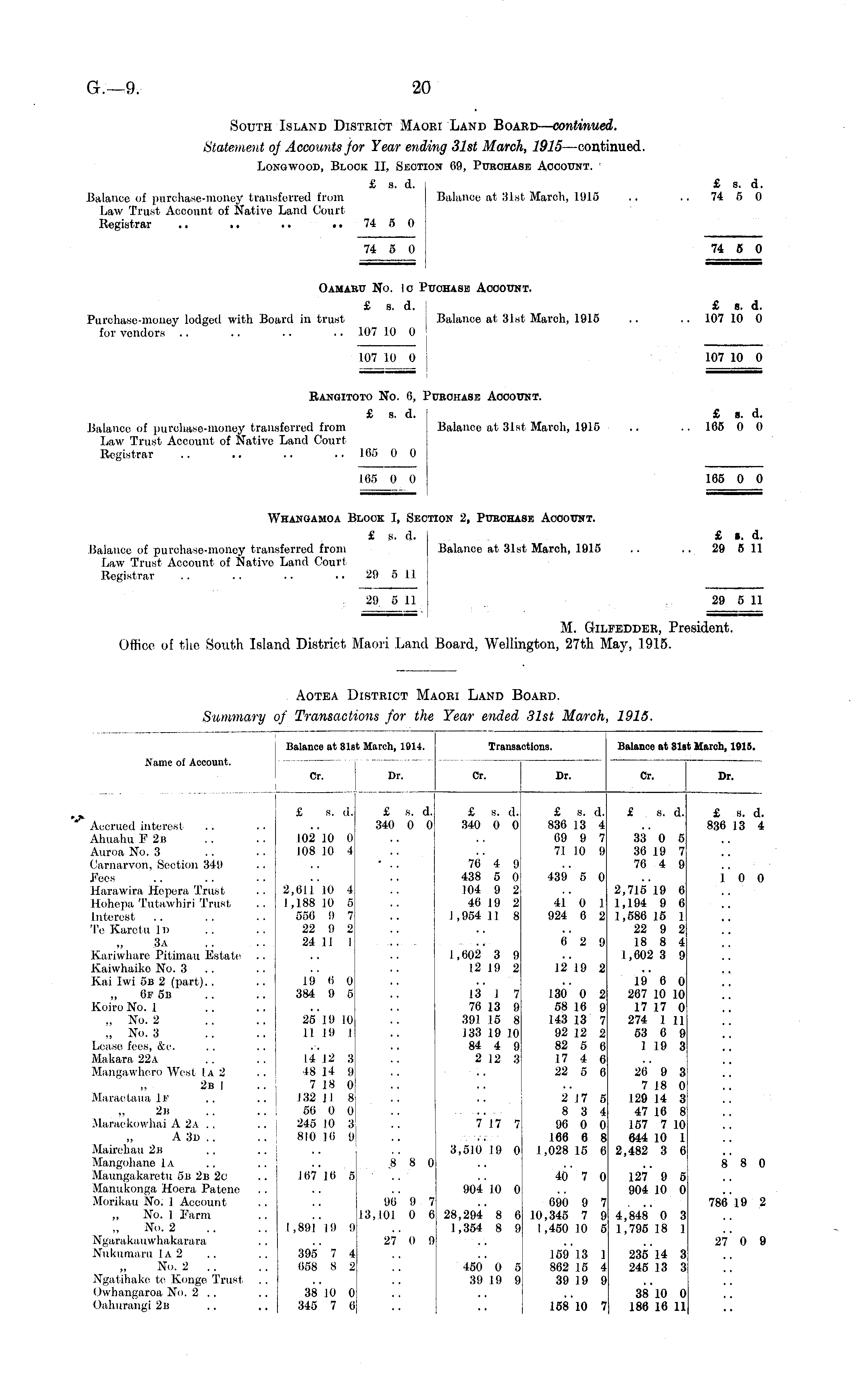 Aotea District Maori Land Board. Summary of Transactions for the Year ended 31st March, 1915.