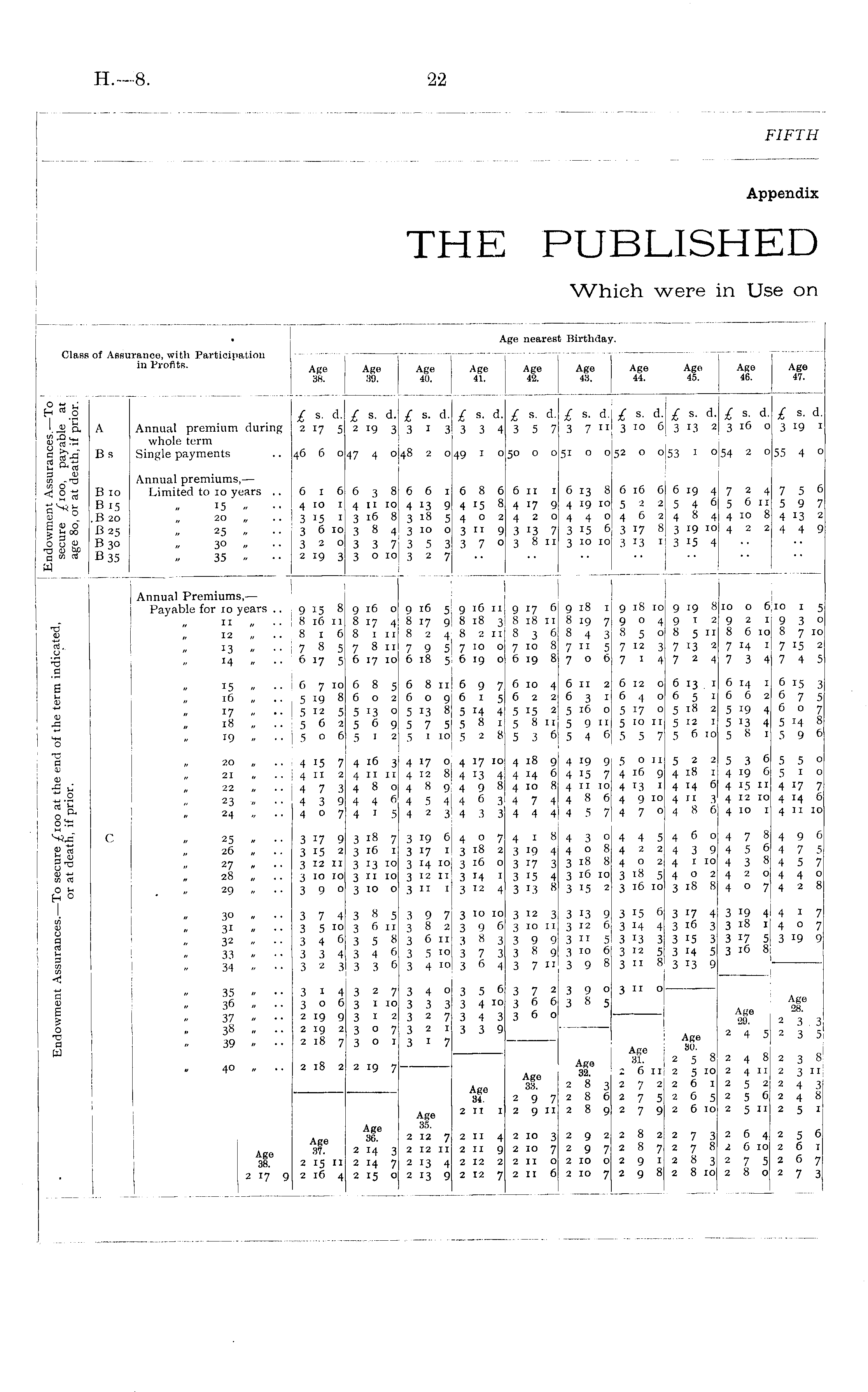 Appendix No. 1—continued., THE PUBLISHED TABLES OF PREMIUMS