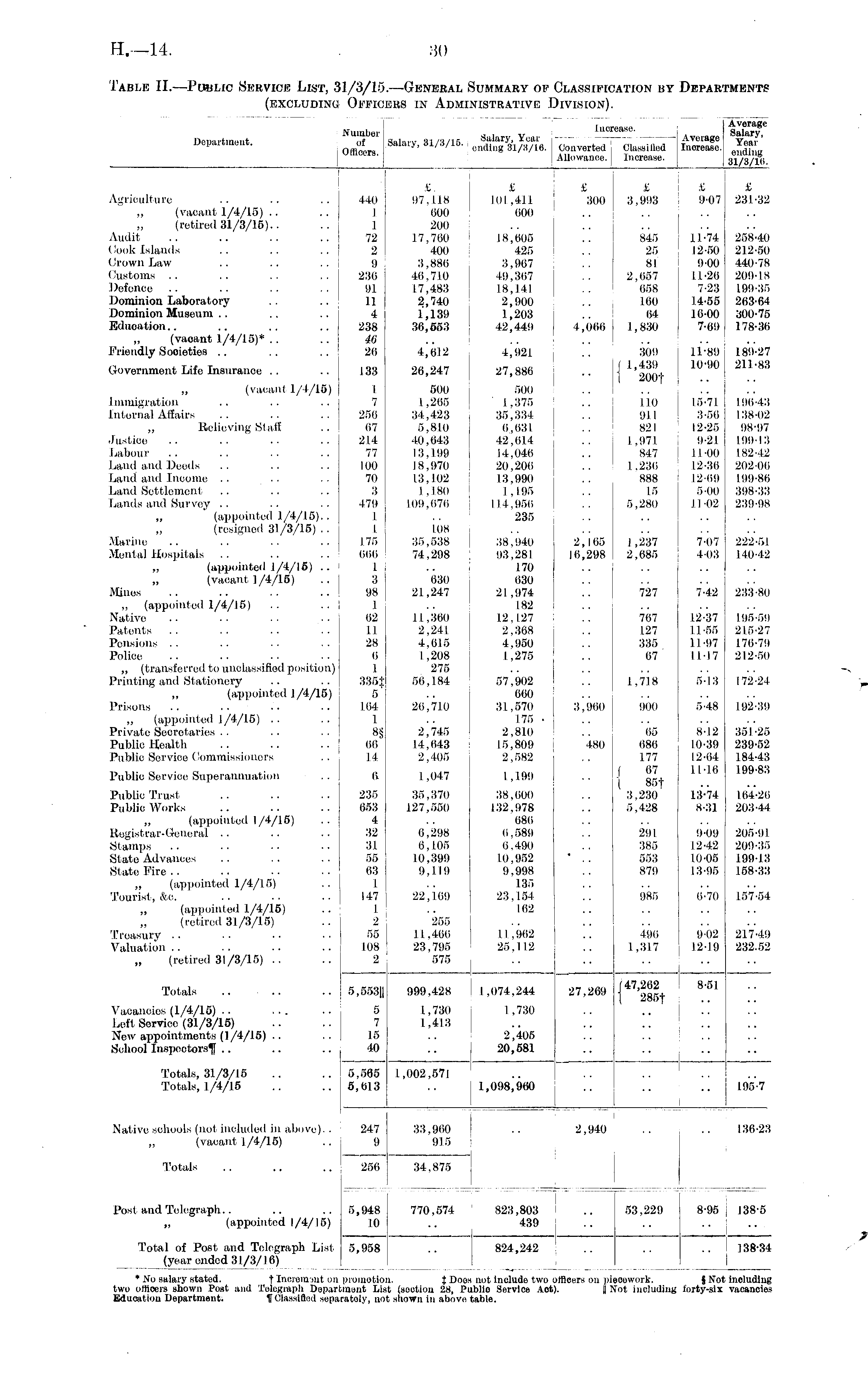 Table II.—Public Service List, 31/3/15. —General Summary of Classification by Departments (excluding Officers in Administrative Division).