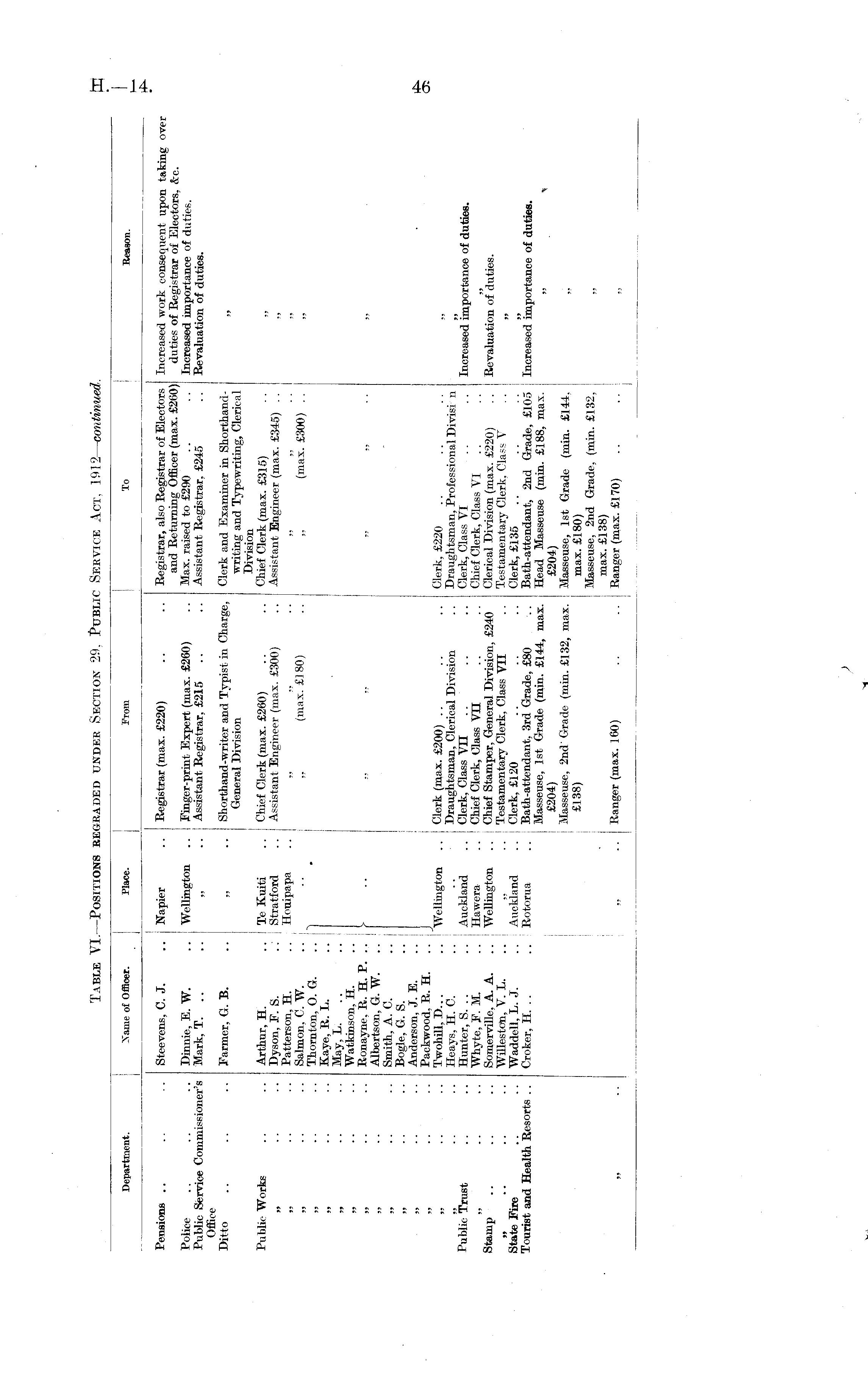 Table VI.—Positions regraded under Section 29, Public Service Act, 19 12— continued.