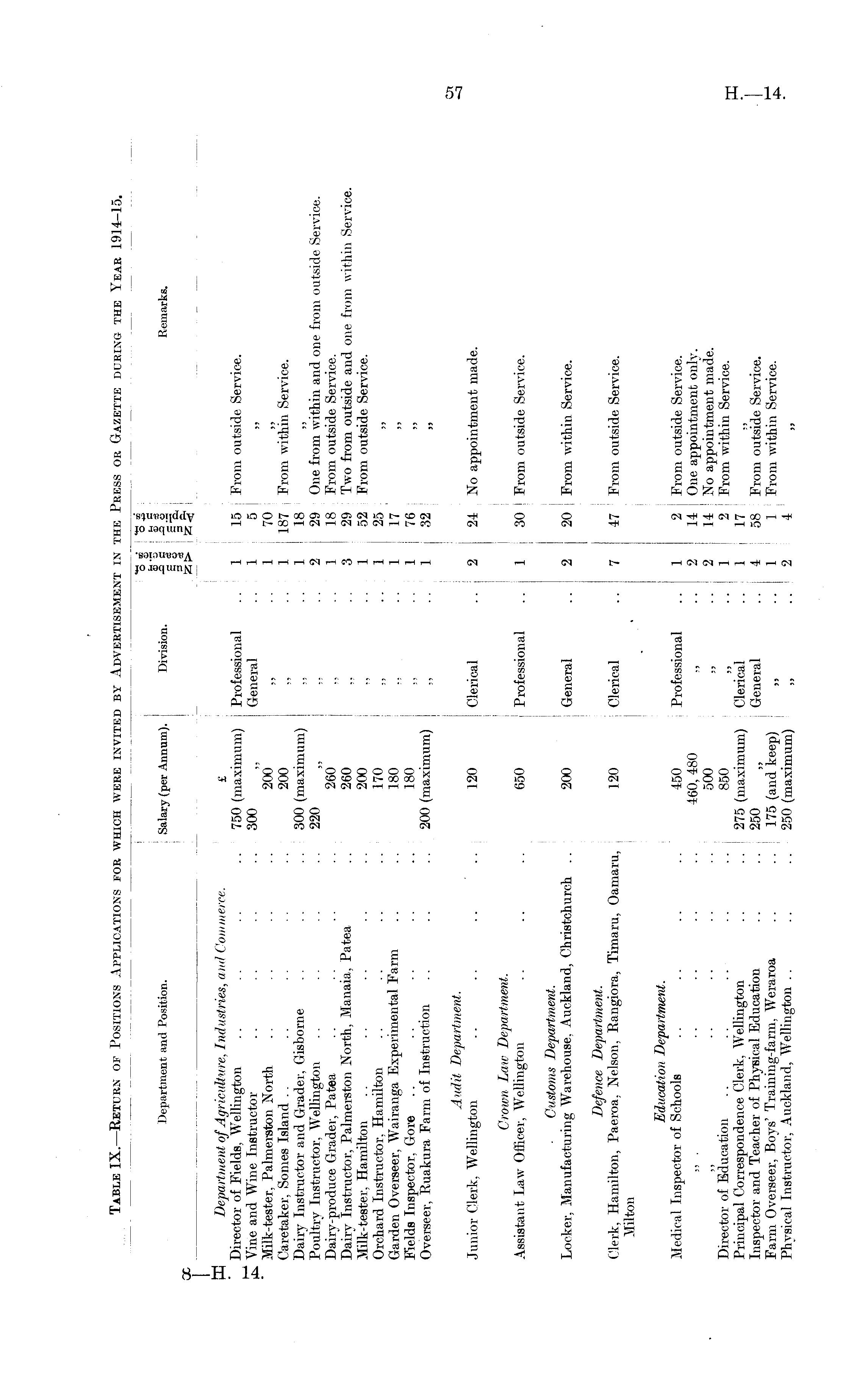 Table IX.—Return of Positions Applications for which were invited by Advertisement in the Press or Gazette during the Year 1914-15.